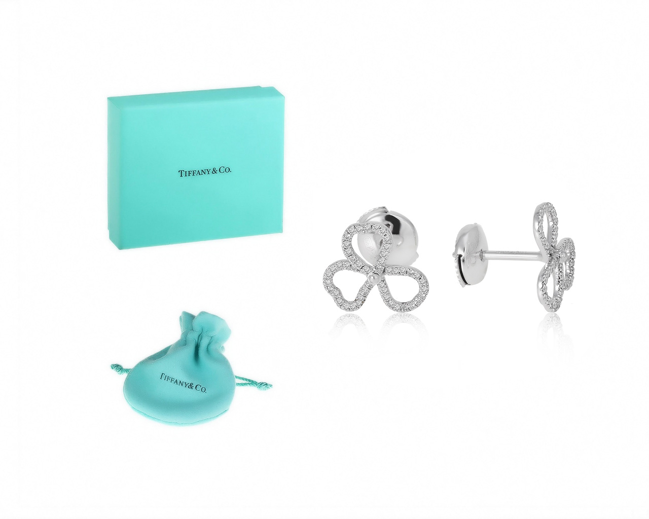 Оригинальные платиновые серьги с бриллиантами 0.24ct Tiffany & Co Paper Flower