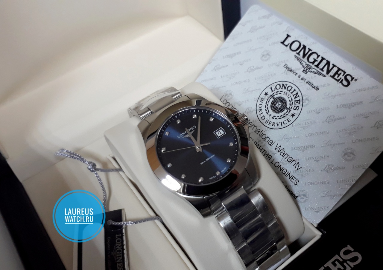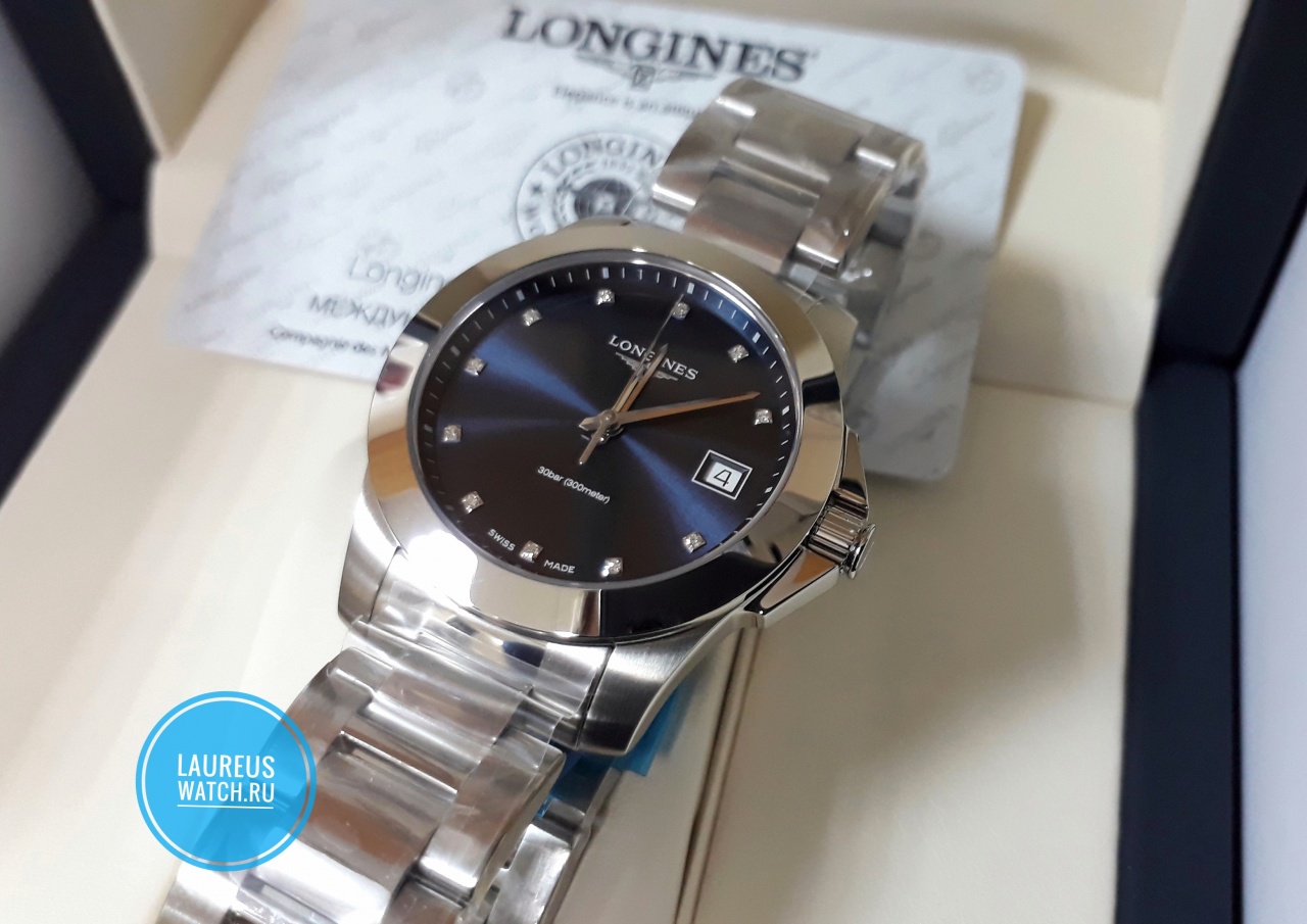[ LONGINES ] Женские CONQUEST 34 mm. Синий циферблат с бриллиантами.