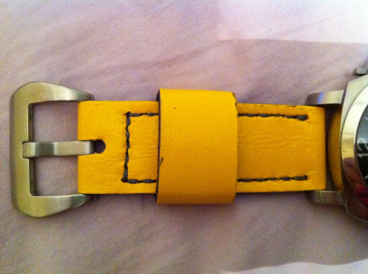 А вот с желтым не все так радужно: вопервых на фото он более матовый чтоли, а по факту блестит как дешевый кожзам (кстати не уверен что это кожа), нитки темные а на сайте светлые, жесткий ремень, и вообще такое ощущение что делался на скорую руку, кое где видны следы маркера которым он размечал ремень перед резкой. Ну вобщем желтым я не доволен, если б видел в живую что покупал - никогда б не купил.