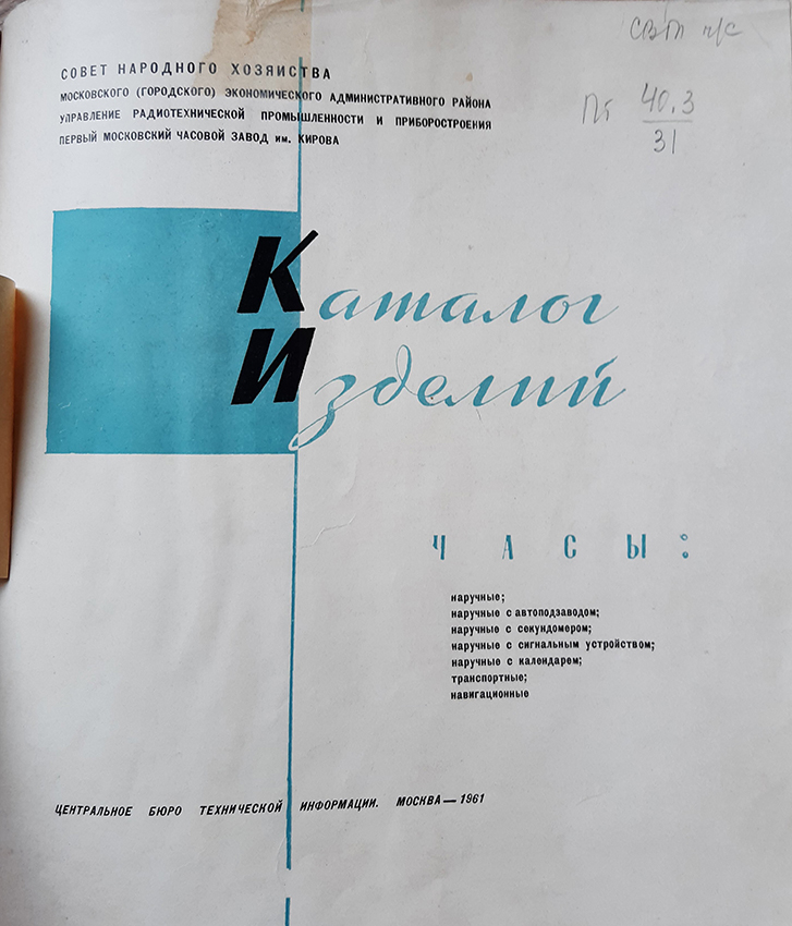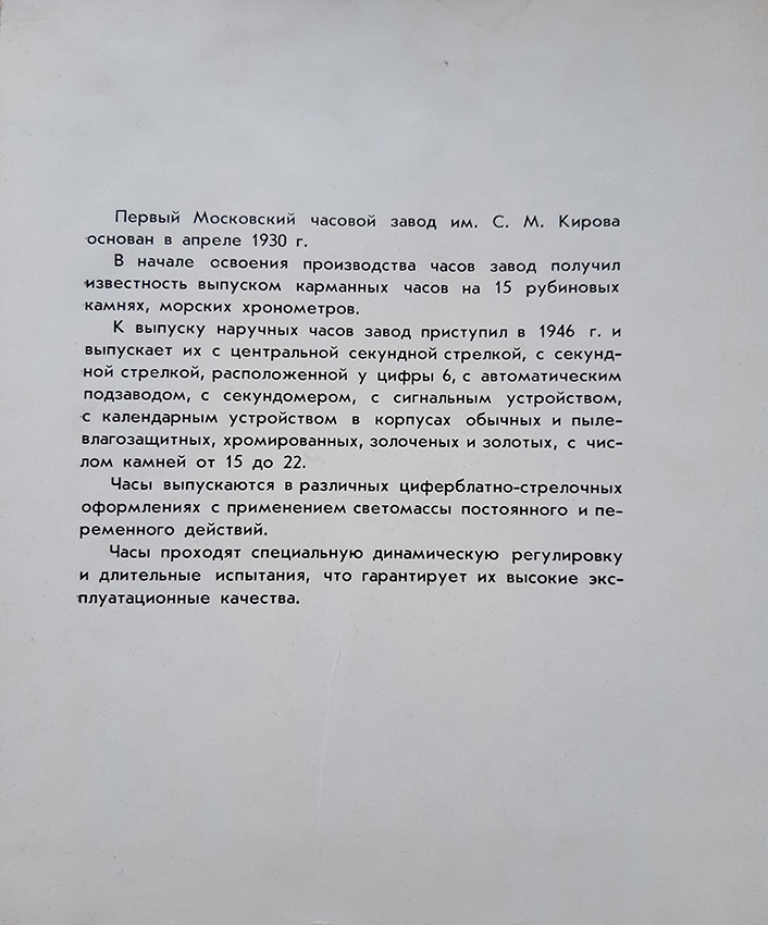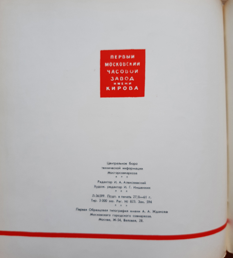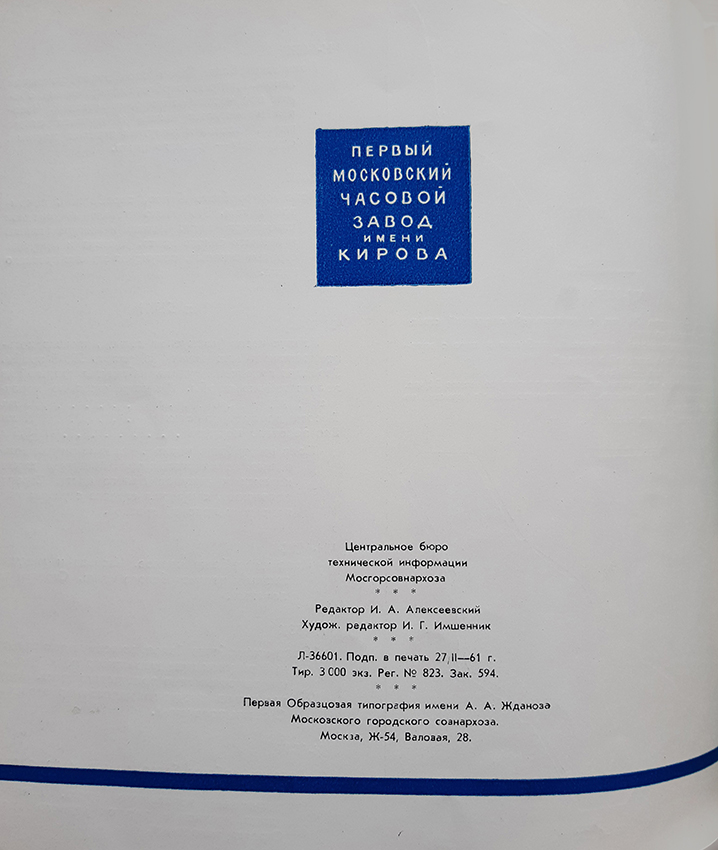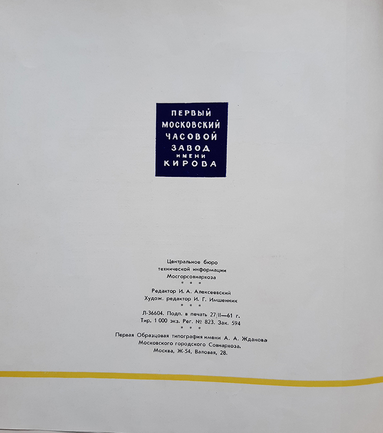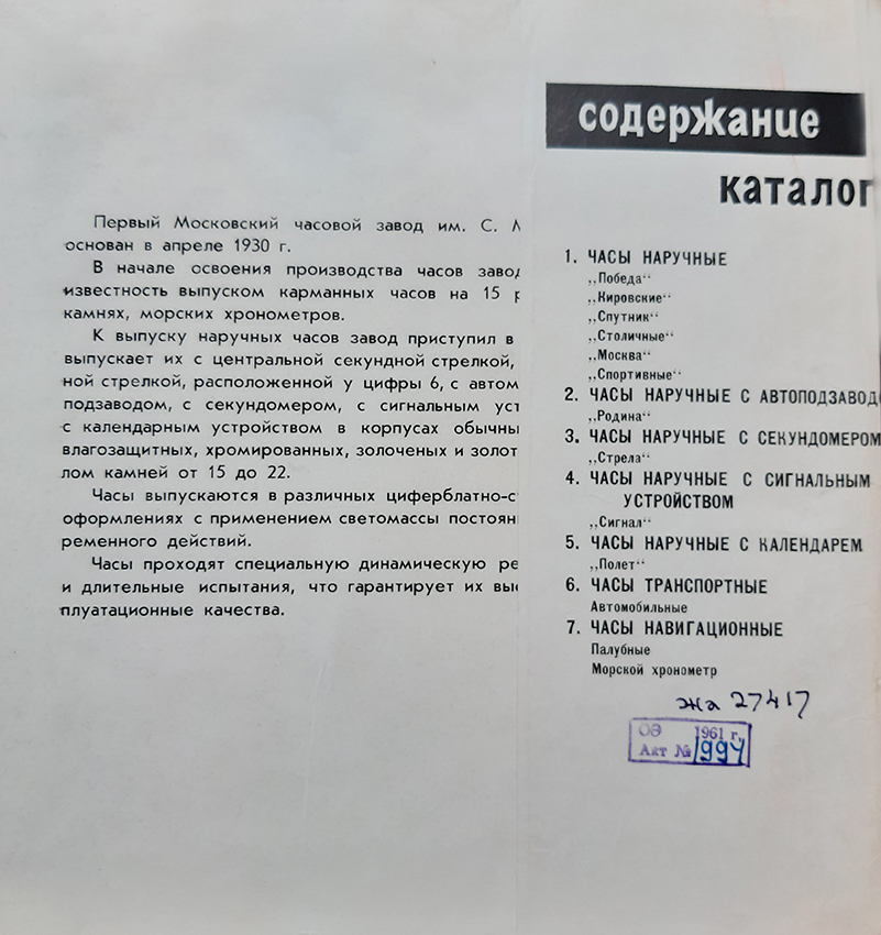 Каталог часов 1МЧЗ 1961 год