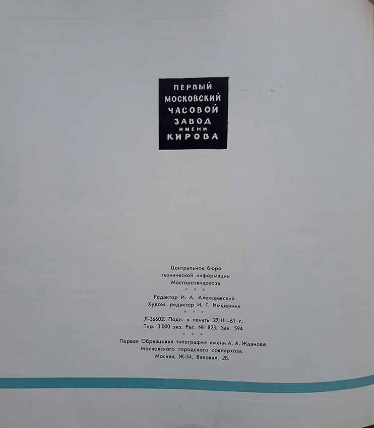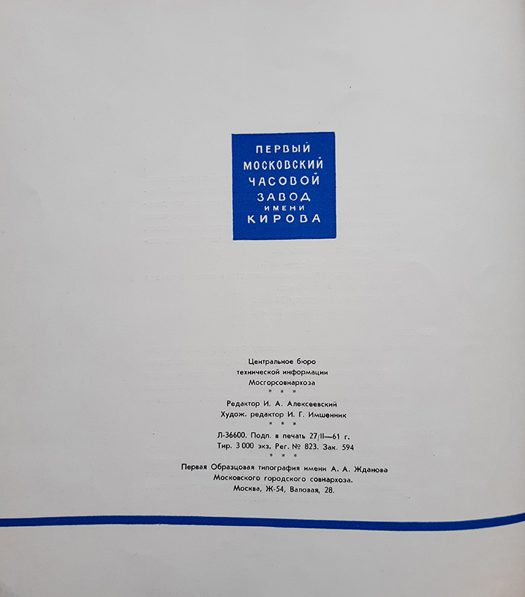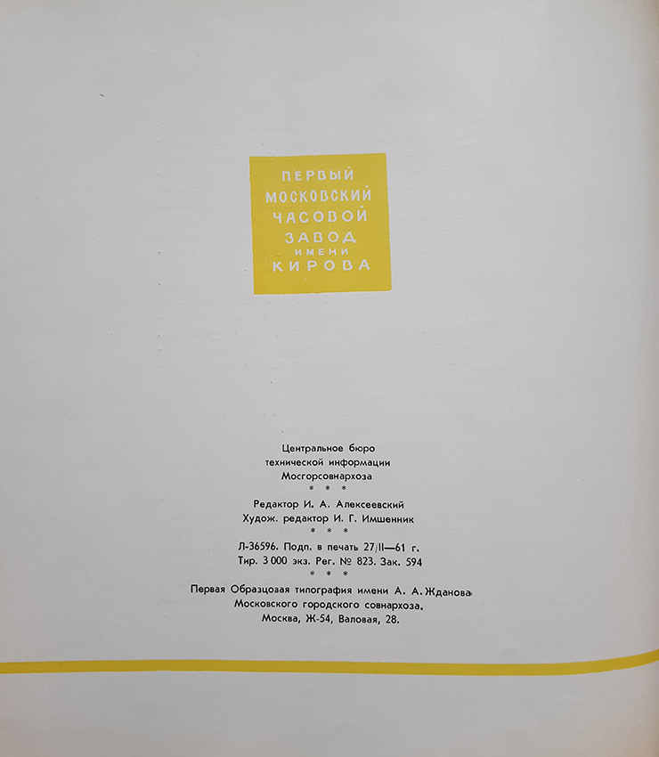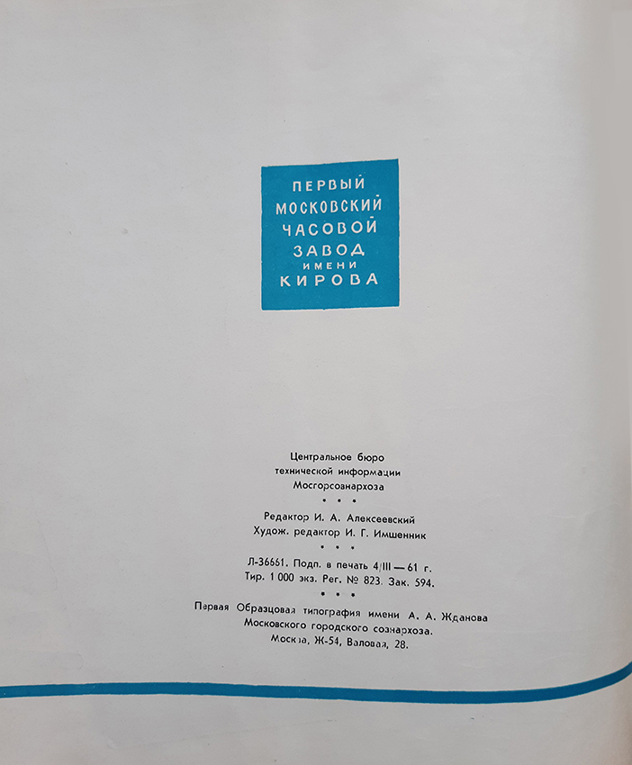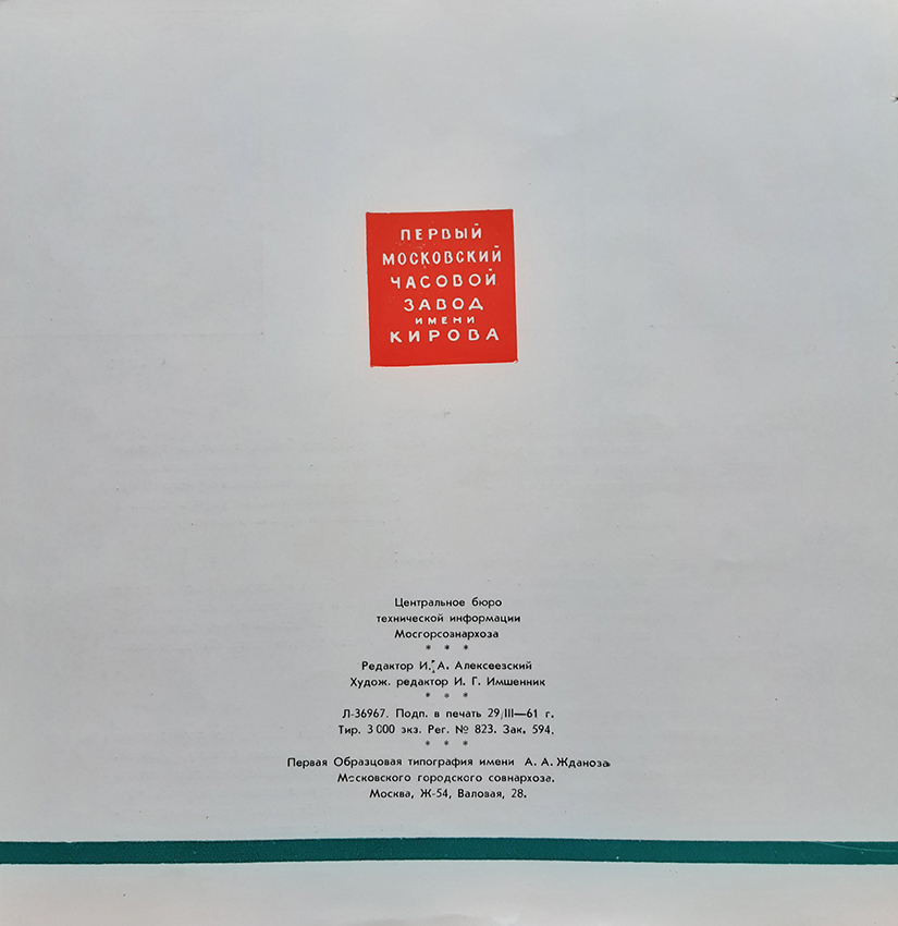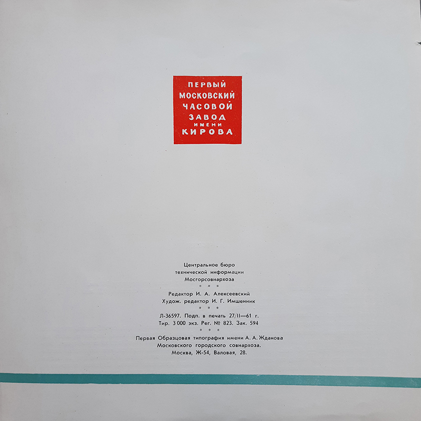 Каталог часов 1МЧЗ 1961 год