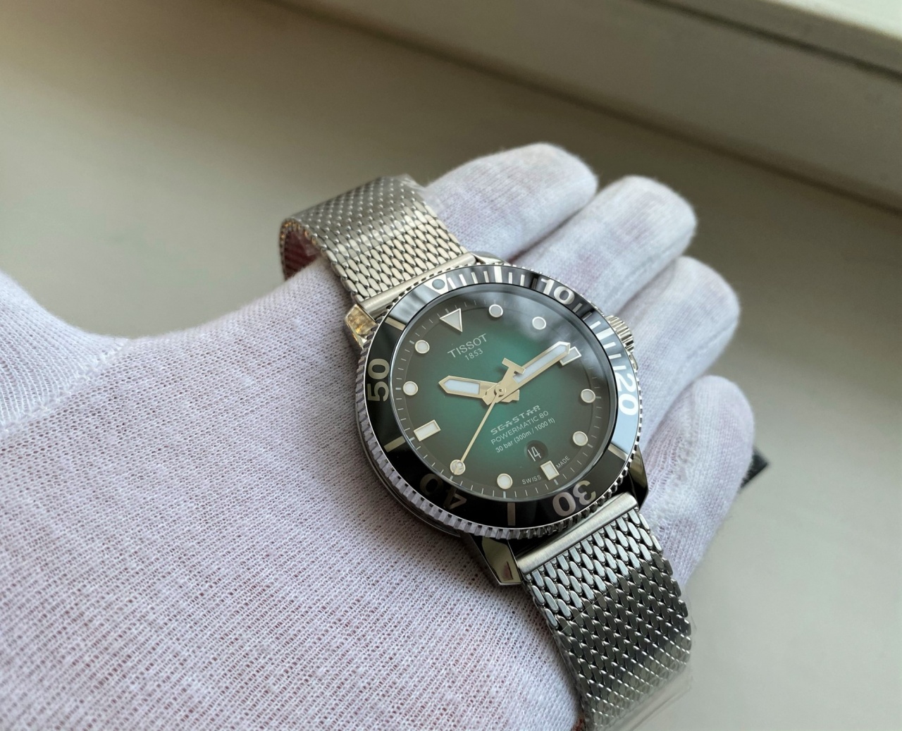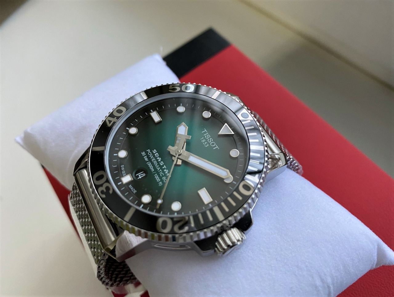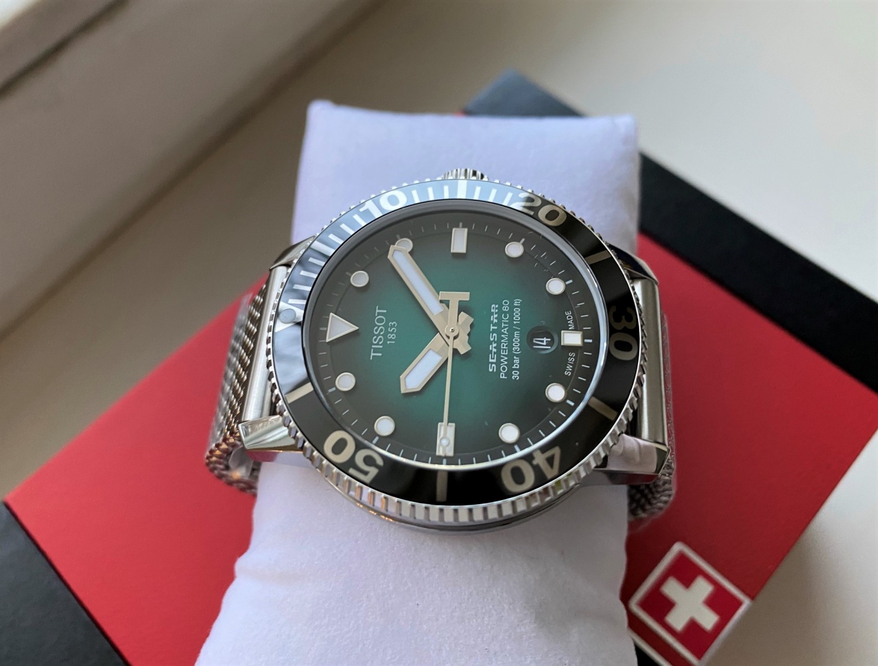Темно-зеленый цвет циферблата, накладные метки, харизматичный,