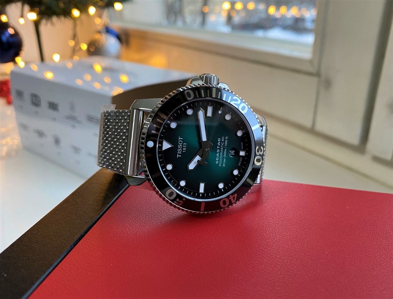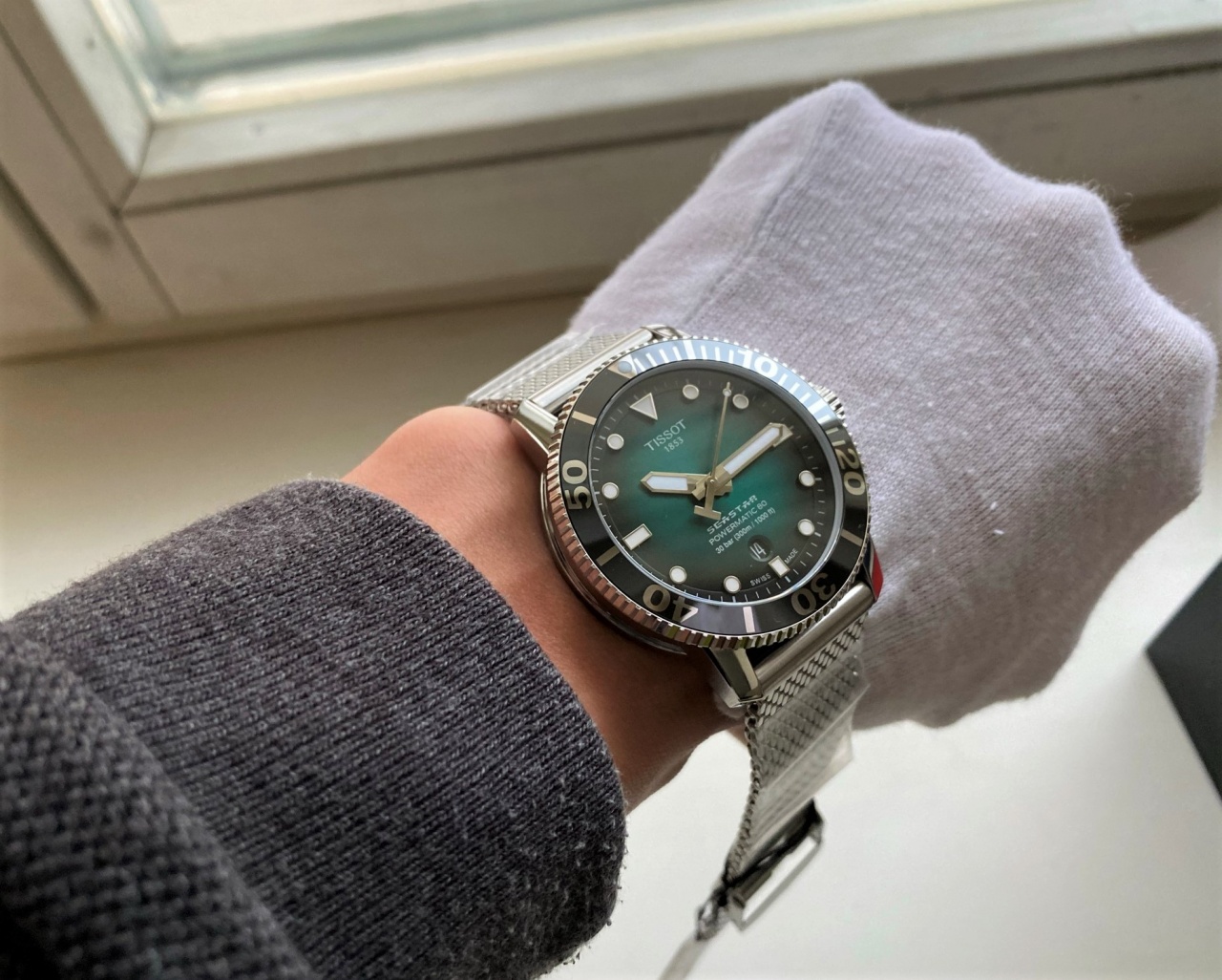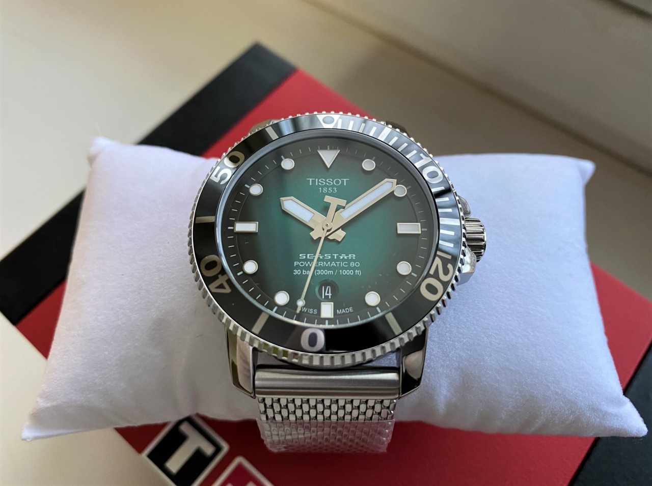 Темно-зеленый цвет циферблата, накладные метки, харизматичный,