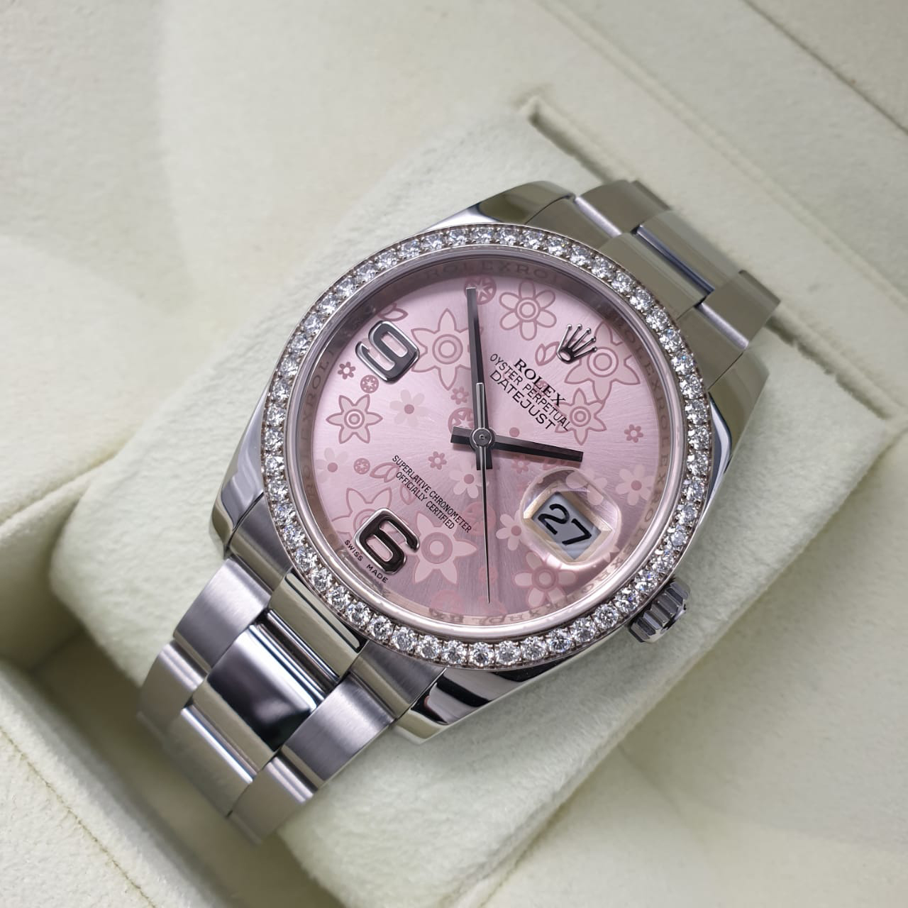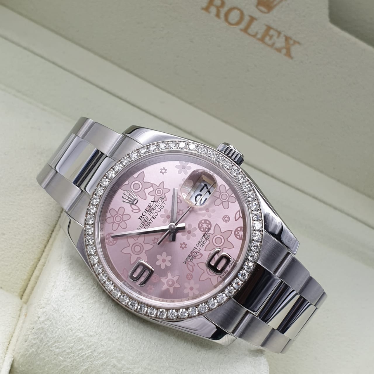 Корпус: Нержавеющая сталь, безель из белого золота 18 карат украшен бриллиантами