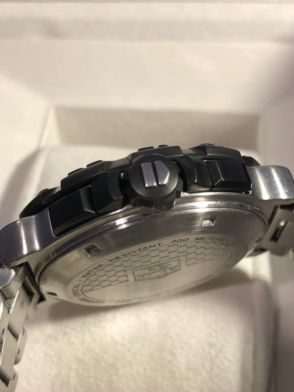 Черный циферблат напоминает приборную панель спорткара. Завинчивающаяся заводная головка Easy Grip с защитой. Завинчивающаяся задняя крышка с круговой матовой отделкой украшенная специальным узором ''клетка''. Браслет с раскладывающейся застежкой. Застежка с системой блокировки и увеличением длины.