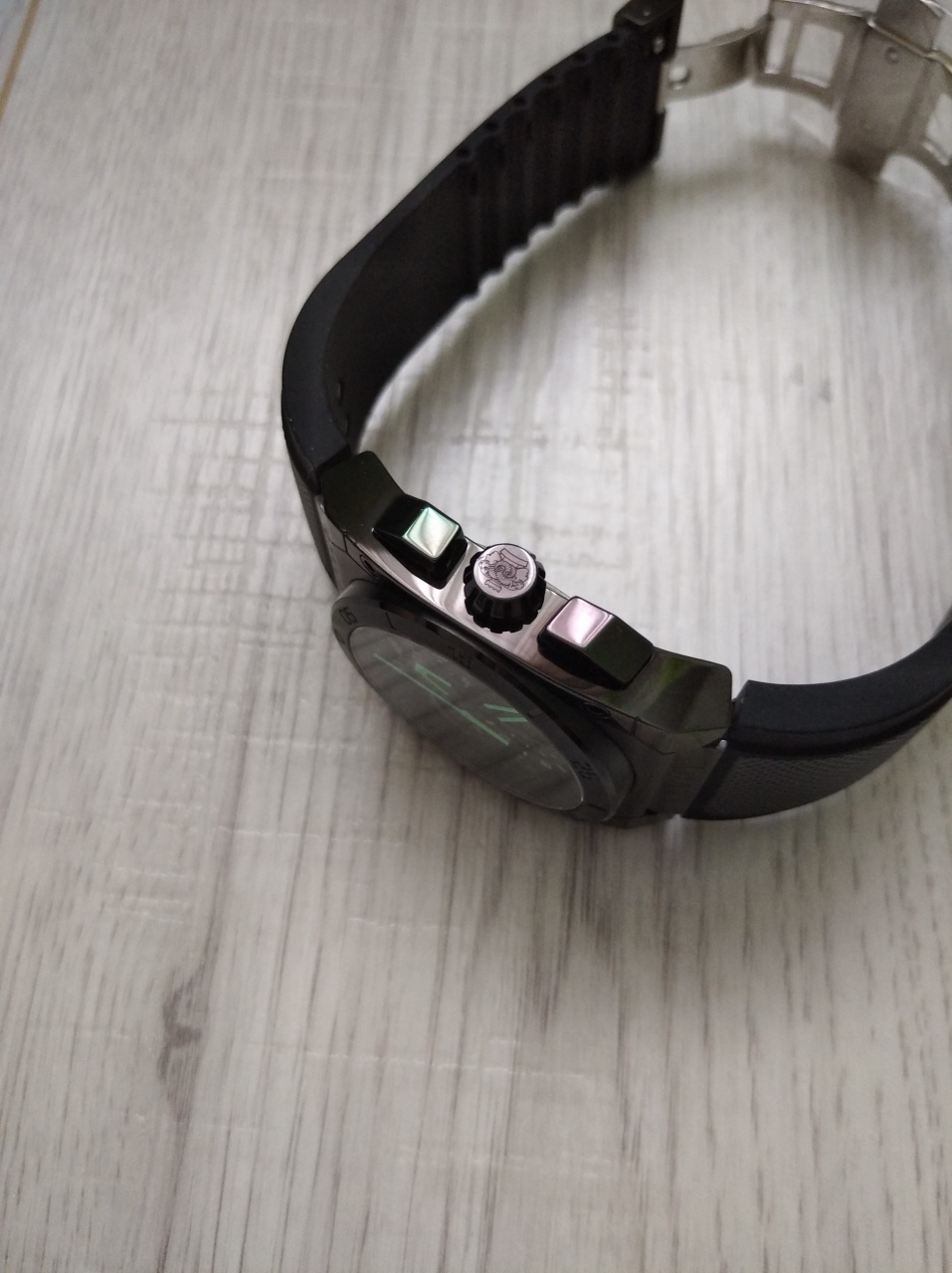 Ремень: шикарный толстый и удобный каучук с раскладной застежкой, вставки по бокам на 4 винтах. Ушки на 24 мм