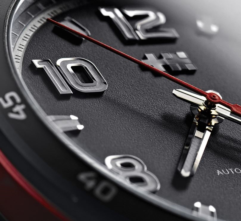 - Циферблат: матовый черный с накладными логотипом, стальными часовыми индексами, цифрами, а также часовой и минутной стрелками с люминесцентным покрытием SuperLuminova SLN-T-C1