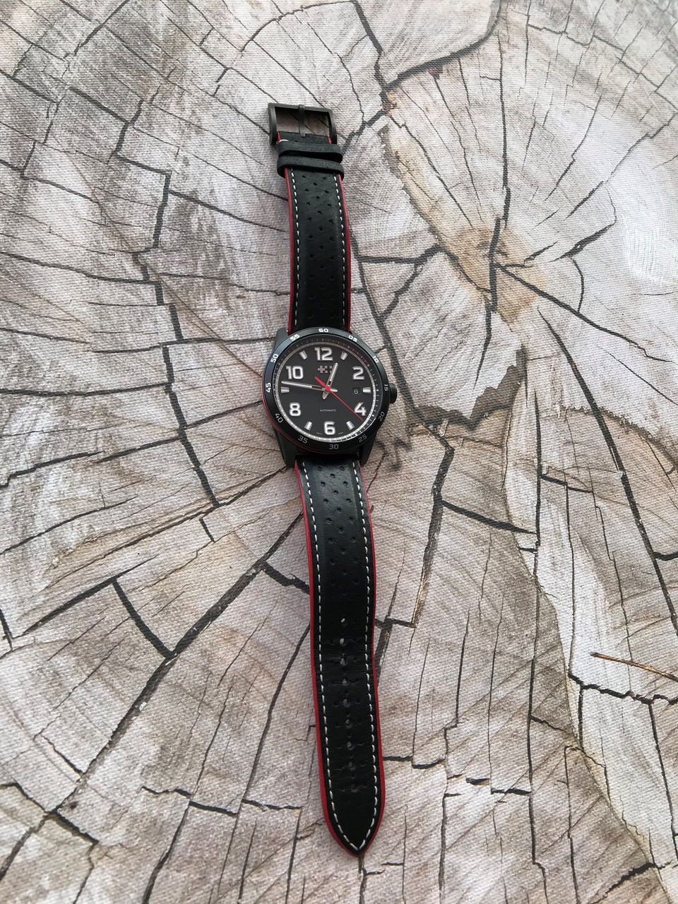 - Ремешок: Кожаный двухцветный ремешок из итальянской натуральной кожи Black Piccari с системой быстрой замены. Застежка бакля из нержавеющей стали с покрытием DLC.