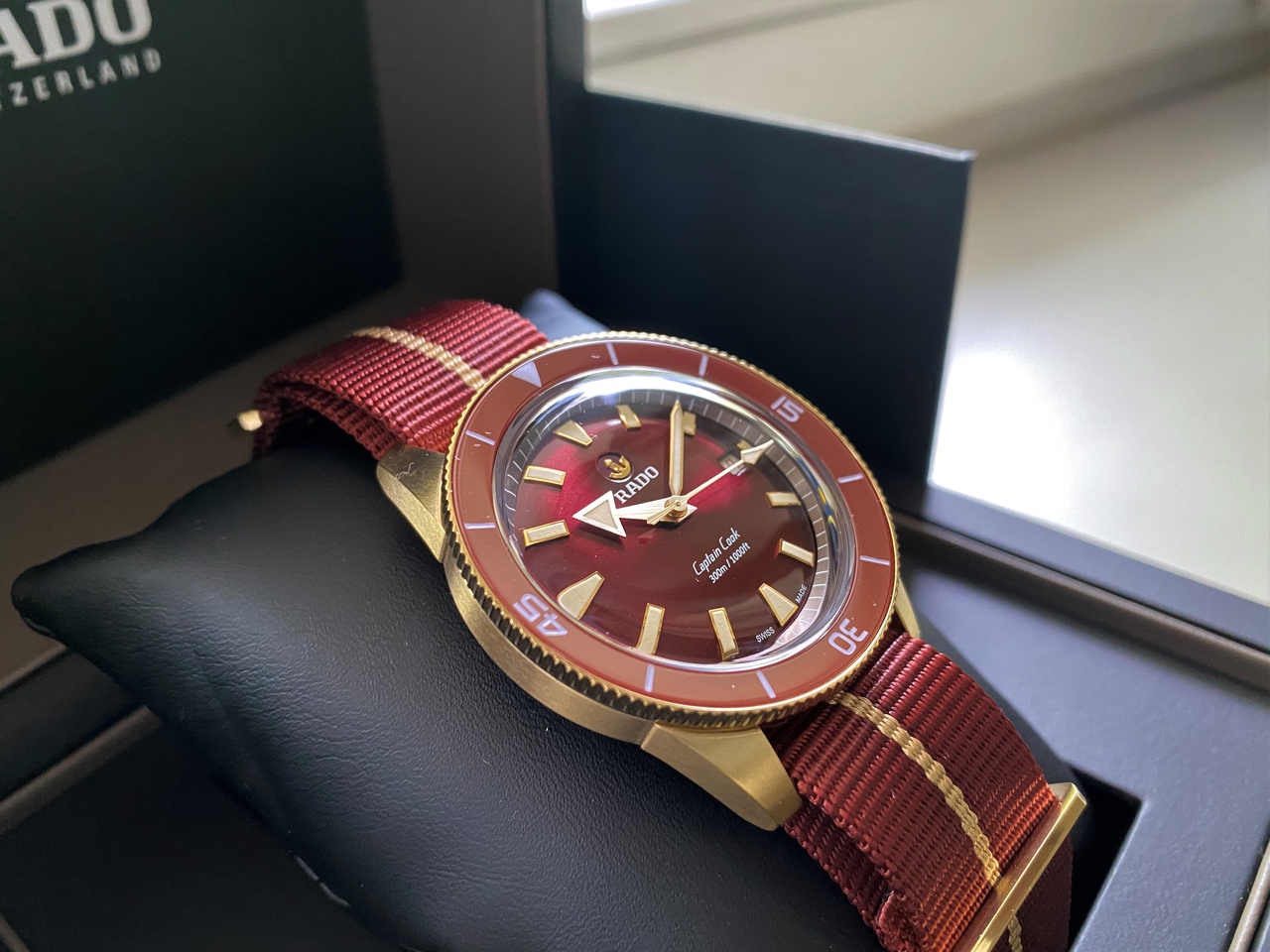 Сaptain Cook, модель в бронзе, с невероятным, бордовым циферблатом,