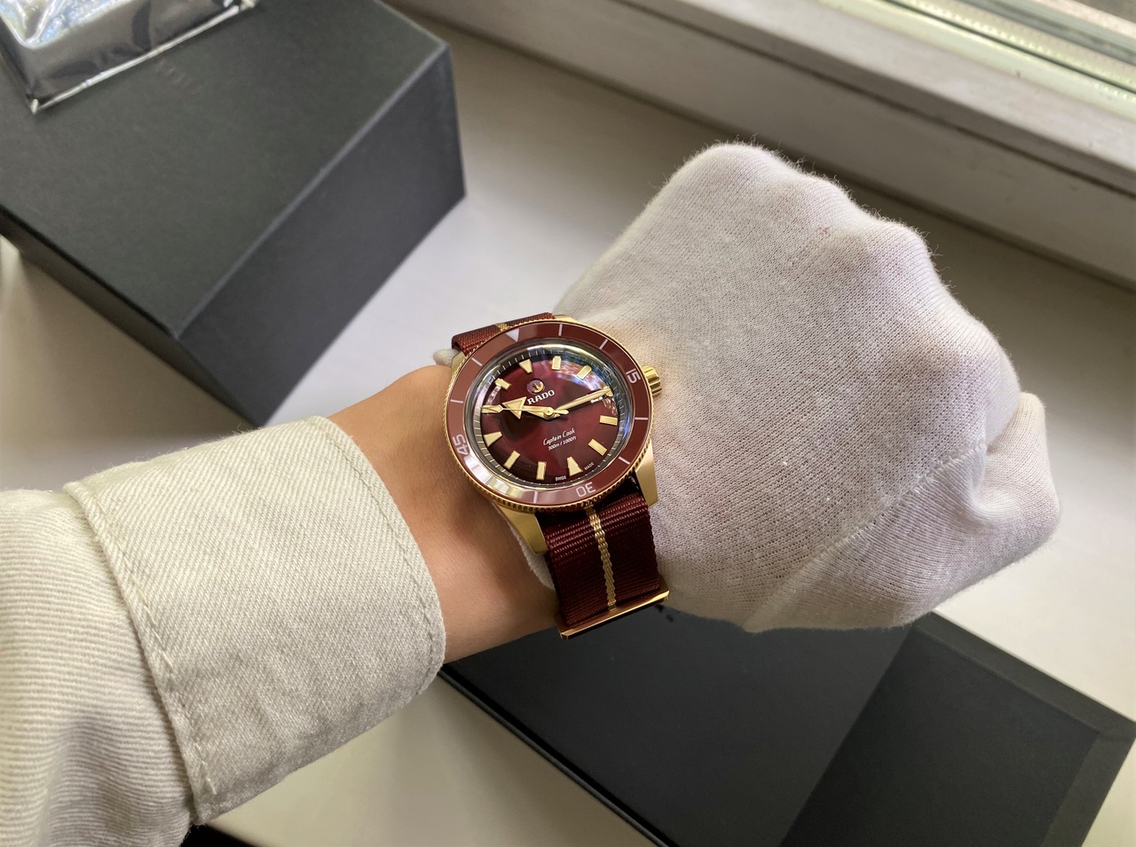 Бордовый, насыщенный цвет циферблата, керамический безель, накладные метки! (только на моделях