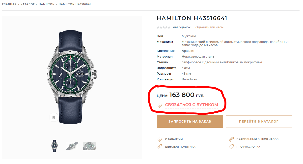Калибр: H-21 (ETA Valjoux 7750) Запас хода 60 часов