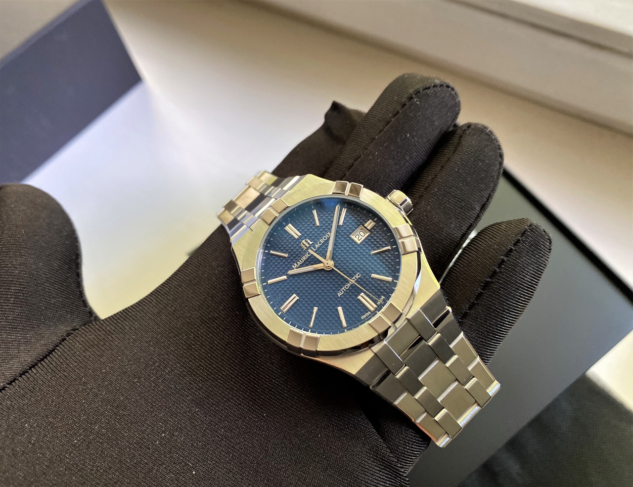 Прекрасный, синий, рельефный циферблат, очень красивый браслет, механика с автоподзаводом, водозащита 200 метров, диаметр 42мм.