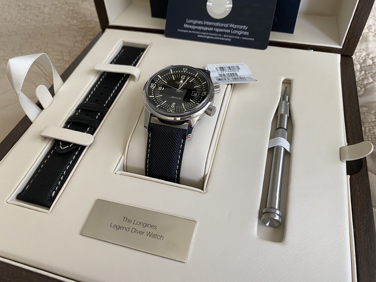 Предлагаю к продаже историческую модель из линейки часов Longines Legend Diver Watch. Их предшественники выпускались с 1960 года. Данная модификация выпускается с 2019 года и является реинкарнацией дайверских Longines с одноименным названием. Внешние изменения довольно незначительны. Кстати, размер корпуса первой Легенды и современной- идентичен, 42мм.