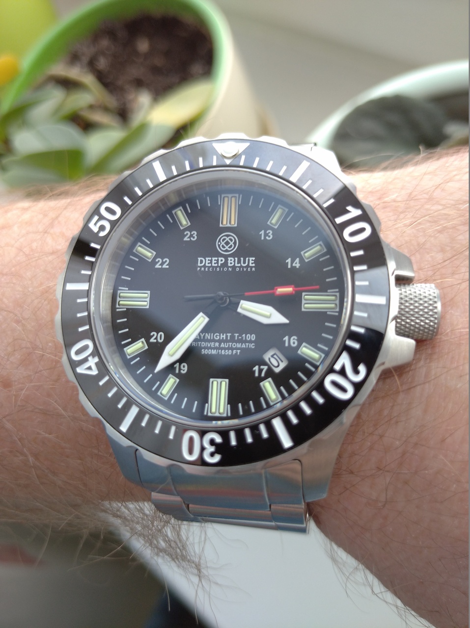 Отличный, крепкий как танк, 500м дайвер с тритиевыми трубками Т-100.