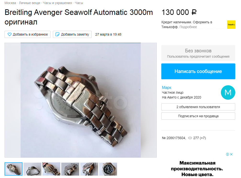 Мошенник на Авито продает мой Breitling Avenger