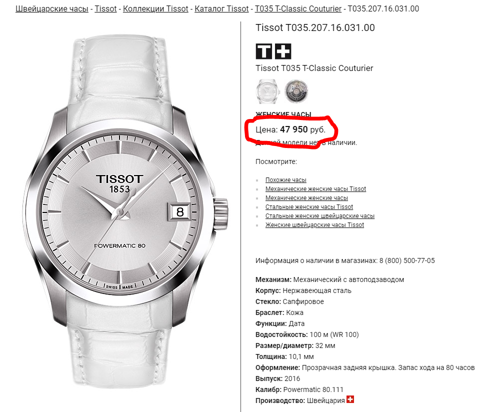 [Женские] TISSOT Couturier Auto T0352071603100. Белая кожа / Серебристый цифер / d=32mm - Часовой форум Watch.ru