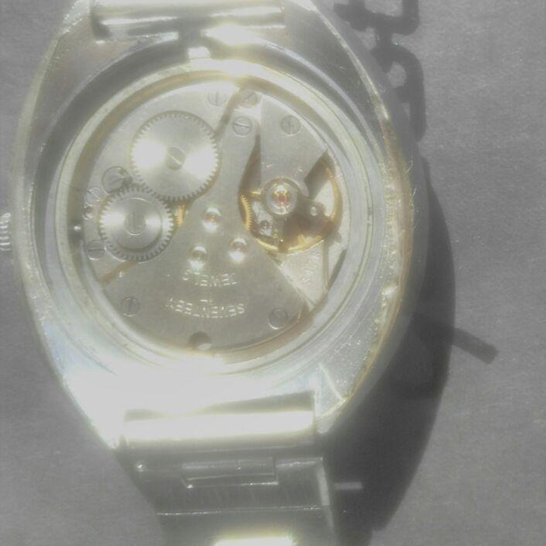 1) Полёт 30 Камней - Красный Циферблат, Хромированный Корпус. Смущает в принципе всё, да тут не хватает календаря и секундной стрелки так как реставрация не проводилась, но стоит ли её вообще делать? Из информации, что я нашел в интернете, насколько мне известно подобный циферблат встречался в люксовой модели костюмных часов с золотым корпусом и автоподзаводом - никаких упоминаний о такой версии с подобным корпусом я не встречал - так что же это, просто куча деталей от разных моделей?