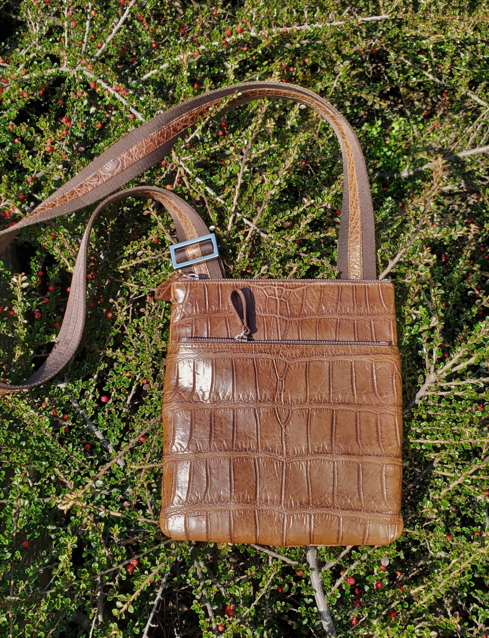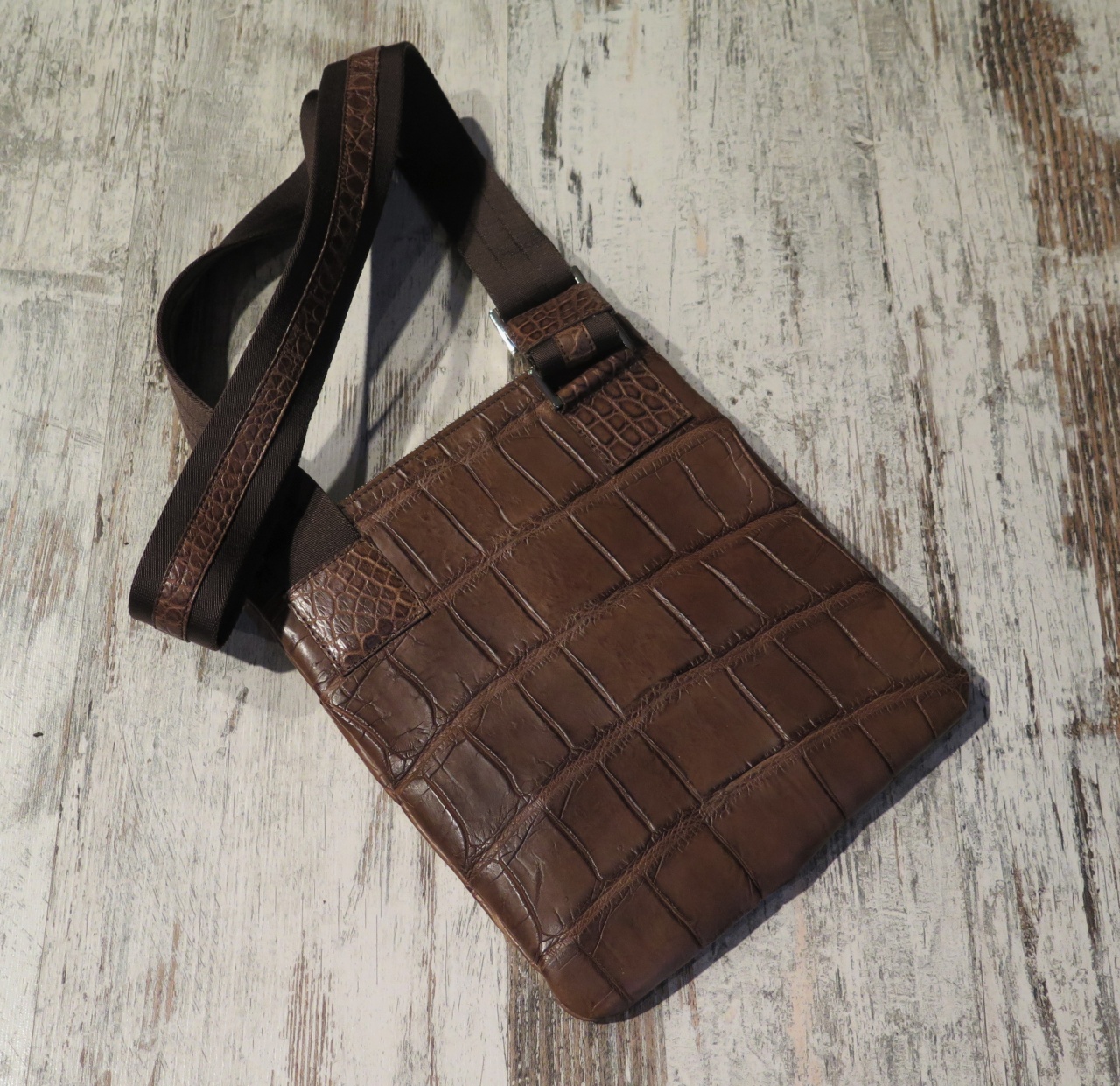 К сумке прилагается несъемный регулируемый плечевой ремень из текстиля коричневого цвета с отделкой из кожи крокодила.