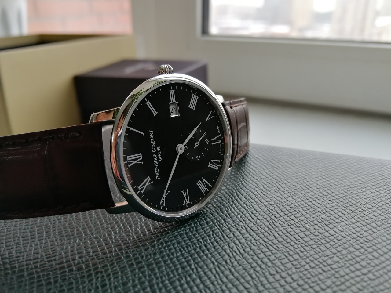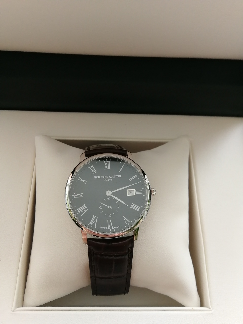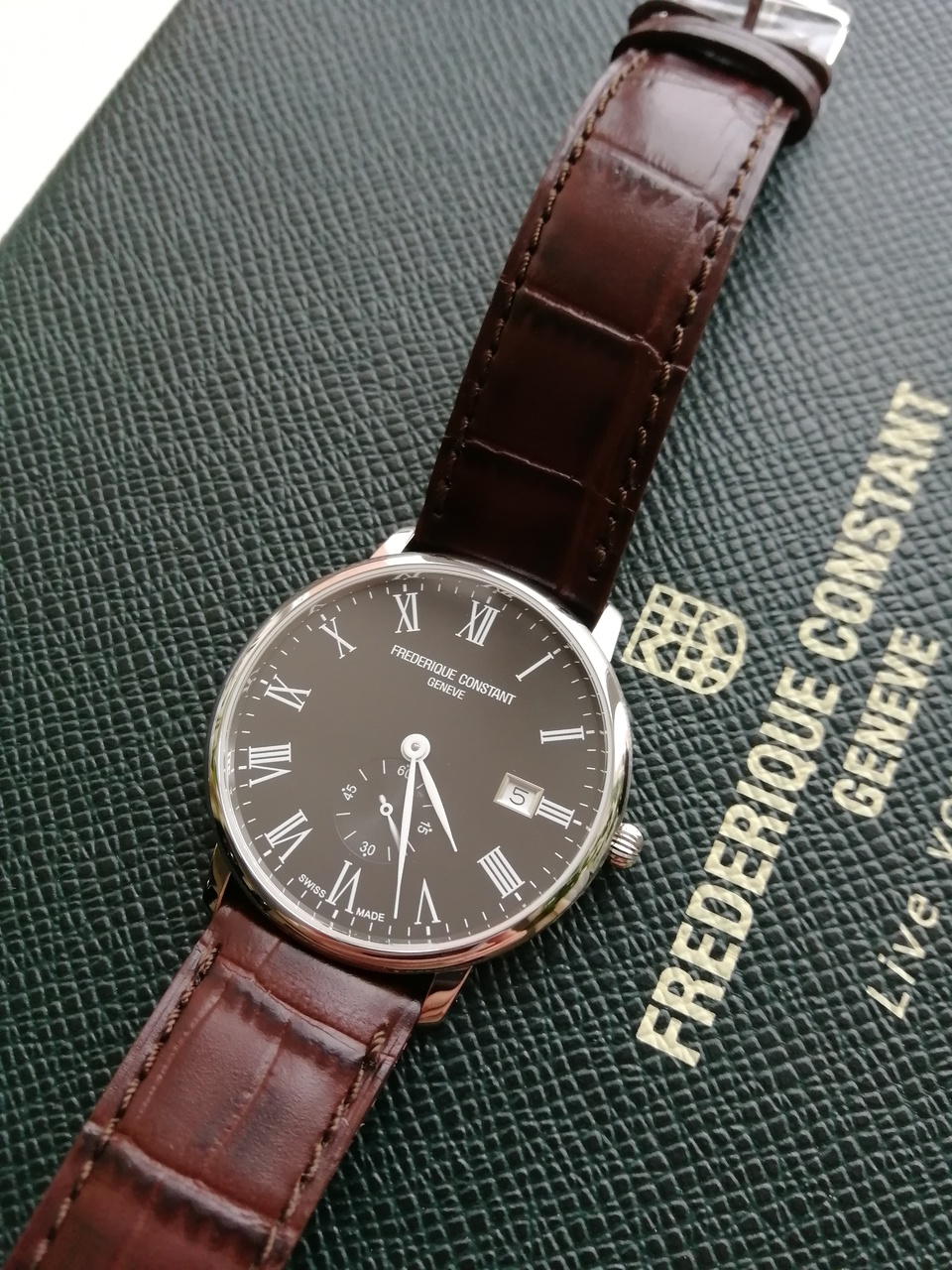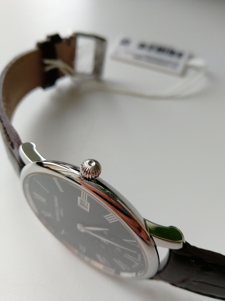 В продаже идеальный вариант классических часов от именитого производителя. Выверенный до мелочей дизайн. Безупречное сочетание строгости, лаконичности и роскоши. Очень комфортная посадка на руку. Отличный кожаный ремешок коричневого цвета с тиснением под крокодила. Отдельно вынесенная малая секундная стрелка. Черный циферблат на контрасте с белыми стрелками и метками создает идеальную читаемость под любым углом. Толщина корпуса всего 5 мм!