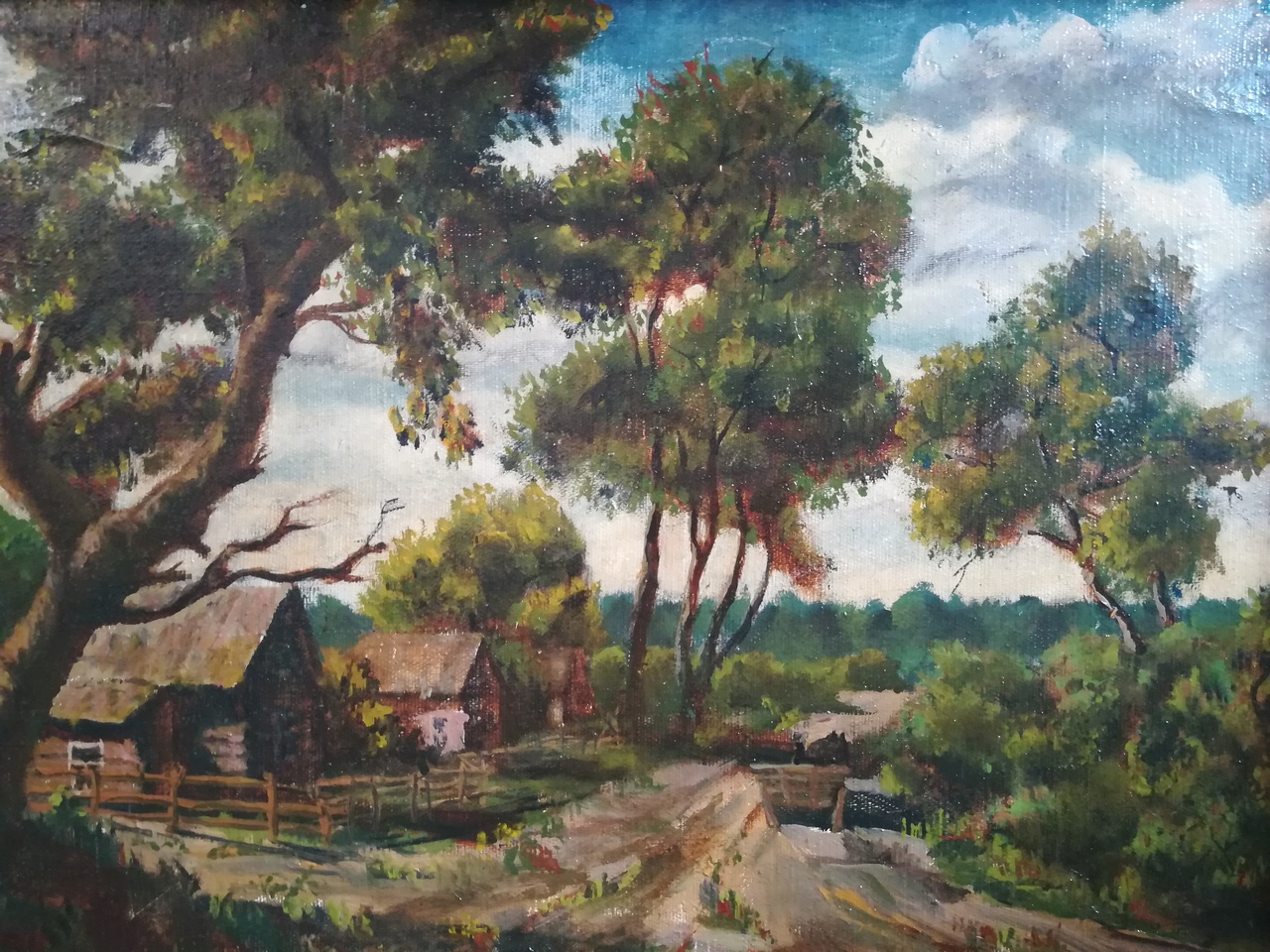 Здравствуйте!!! Предлагается к продаже или обмену картина. Холст-масло, год написания 1954, СЕЛО (71 см на 55 см).