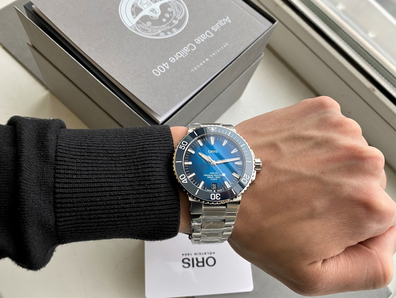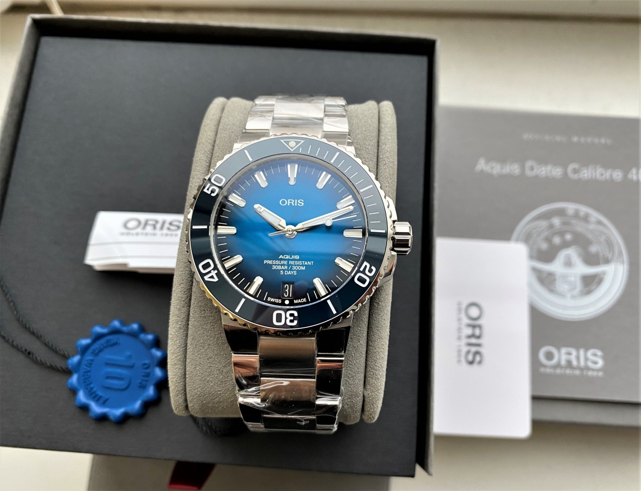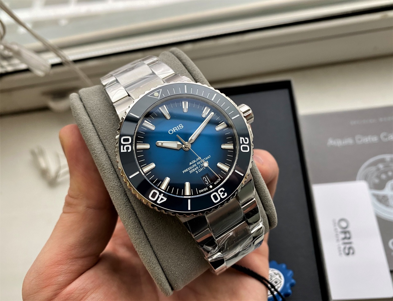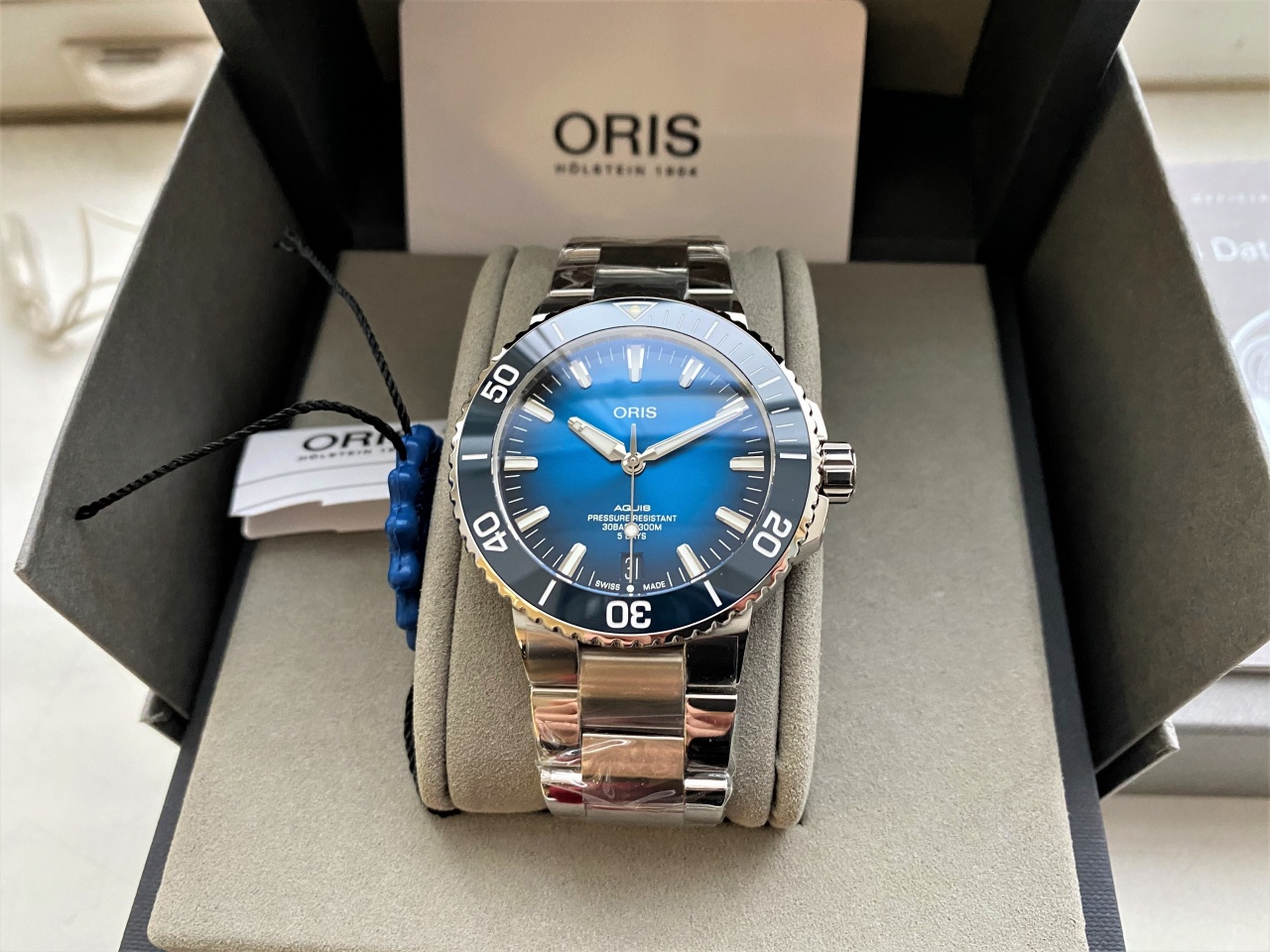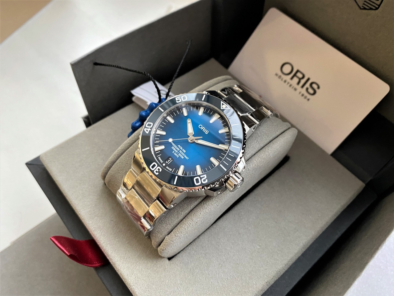Oris, безумно красивый, синий оттенок циферблата, браслет, универсальный диаметр 43.5мм.