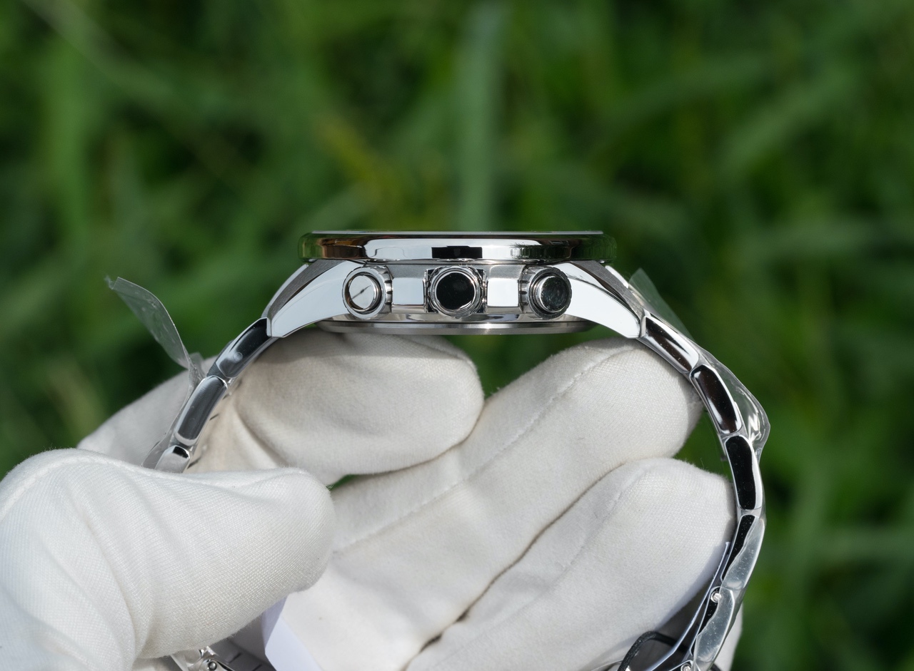 Стальной корпус с защитными выступами у заводной головки, сатин+полировка