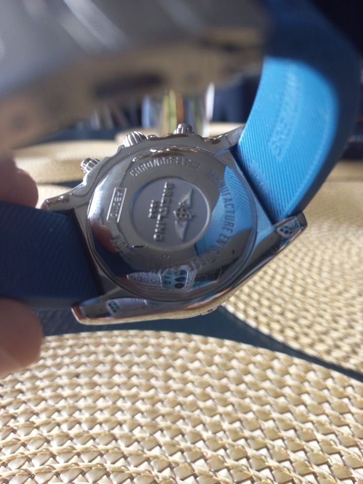 В продаже Breitling Chronomat B01, 44 мм., Ref. AB0110. Часы находятся в Москве. Состояние хорошее. Второй хозяин, покупал тут на форуме. Синий ремень НЕоригинальный. Оригинальный кожаный ремень в комплекте. Торга нет. Только личная встреча, никаких пересылов. К проверкам готов. По обмену - предлагайте только золотые часы. Возможна доплата.