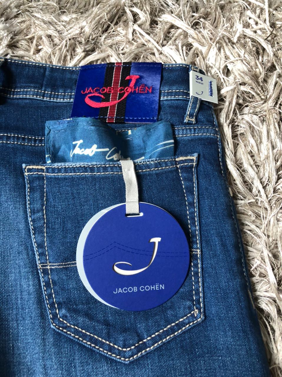 JACOB COHËN новые мужские джинсы классического прямого кроя J620 синего цвета с потёртостями (34 size)