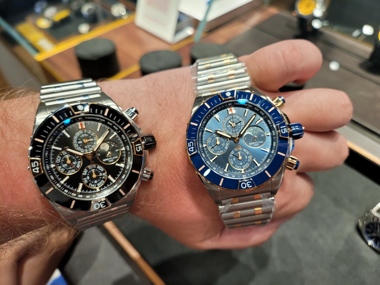 Breitling много. И часто видел на руках у местных жителей. Скидки дают охотно, хотя ценники заманчивыми мне не показались. Avenger Bandit (нижняя фотка) за 21 800 дирхам продают (до вычета налога). Новый навороченный календарник в синем корпусе и с золотыми акцентами за 70 000 дирхам продают (торгуются до 60к и даже ниже после согласования с менеджментом; у нас он 1 374 300 официально стоит). Не понял я новую ценовую политику B - цены выросли, но сходу на новинки скидки дают. Может быть не надо цену в принципе завышать на 10-15%, на которую сразу продавцы торгуются?