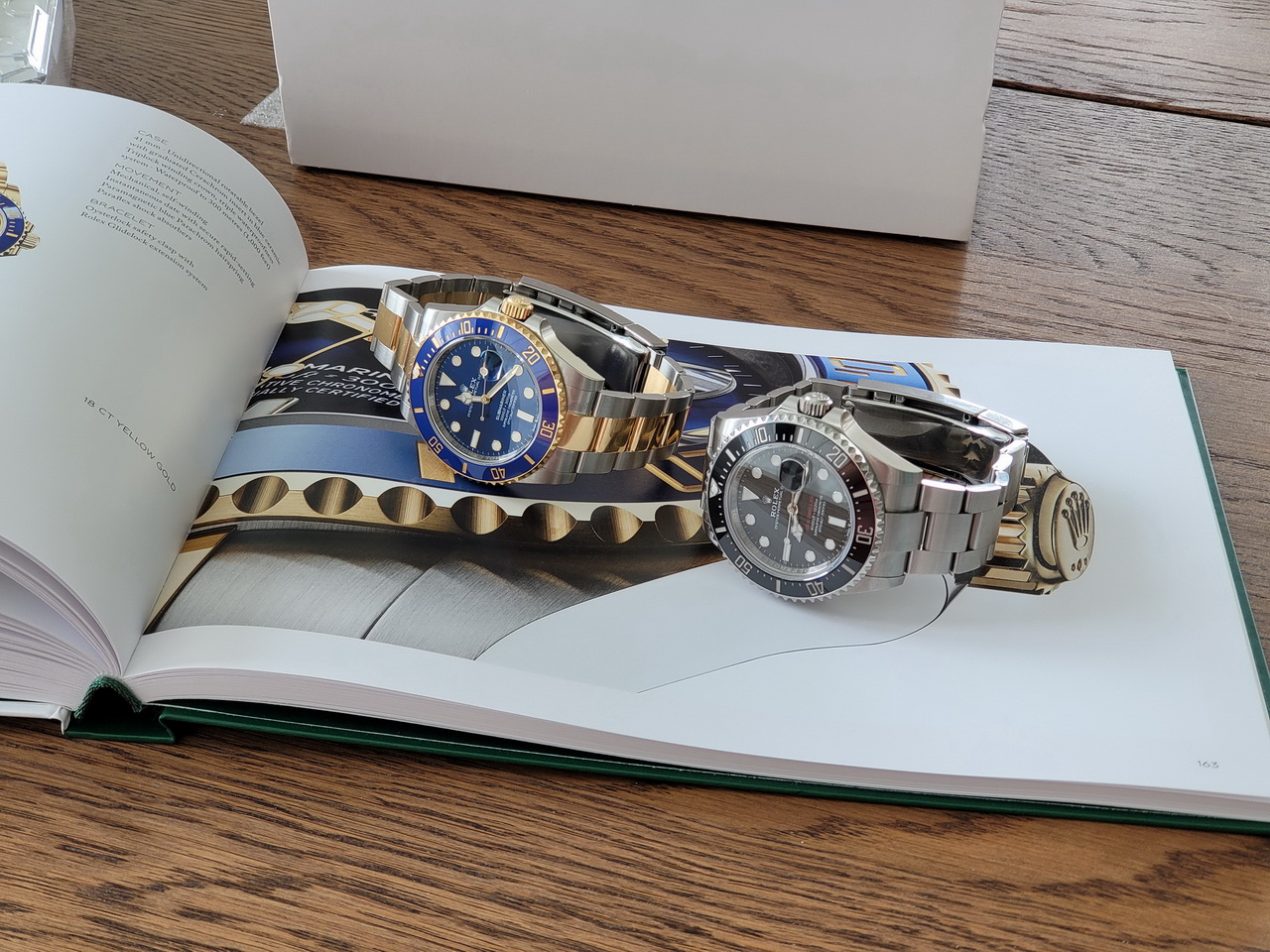 Впечатления от Submariner 41 мм в сравнении с Sea-Dweller такие: существенно легче, удобнее, инерция слабая. На новинке антиблик изнутри, а у SD его, кажется, нет - читаемость вроде бы получше (но это не точно). В целом пока очень радуют - яркие, цветные Спасибо за внимание!