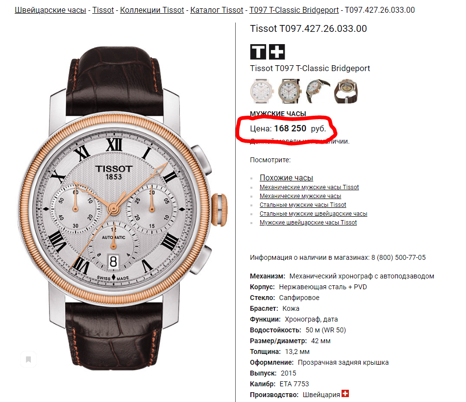 TISSOT Bridgeport Auto Chrono T0974272603300. Биколор / Кожа / ETA-7753 / d=42mm - Часовой форум Watch.ru