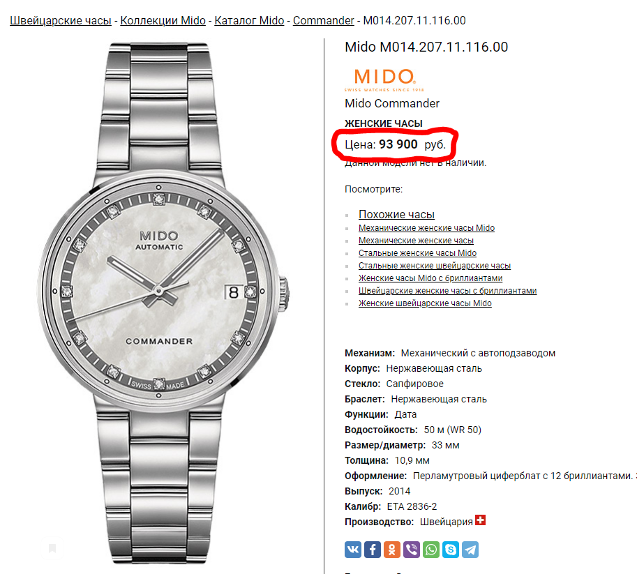 Калибр: ETA 2836-2 (Запас хода 40 часов)
