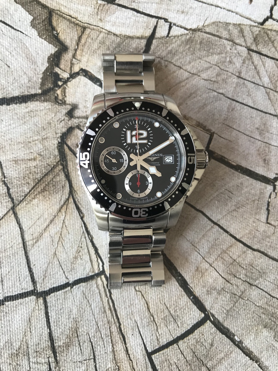В наличии ХИТовый дайвер в правильном размере Longines HydroConquest L3.644.4.56.6 в отличном состоянии! Присутствуют следы эксплуатации, ничего критичного. Полный комплект: Часы, коробка, шкатулка, чехол, инструкция, гарантийная карта, доп. звенья. Тип механизма: механические с автоподзаводом, L667.2 (доработанный Valjoux ETA 7750) (запас хода 42 ч, 25 камней, частота полуколебаний баланса 28800 в час).