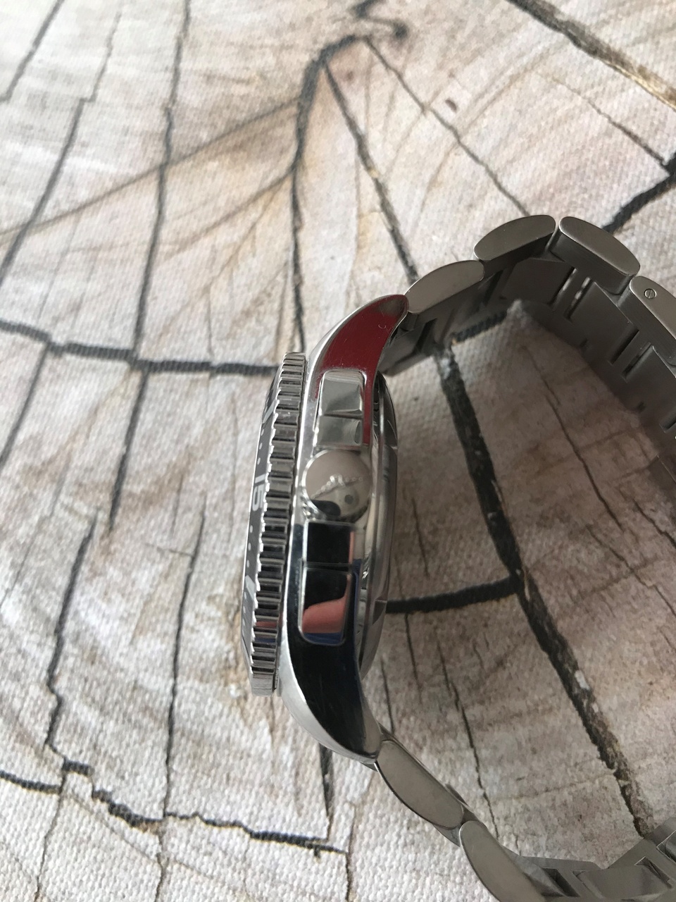 Вращающийся в одном направлении безель. Складная застежка с двойной блокировкой, встроенная система увеличения длины для дайвинга.