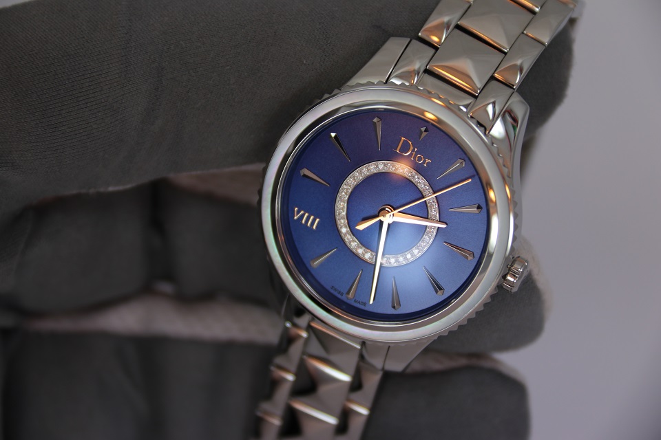 Коллекция Dior VIII Montaigne получила свое название не случайно - число 'восемь' всегда было счастливым для месье Диора. Его Дом моды был основан 8 октября 1946 года, его самая первая коллекция называлась '8'. Кроме того, сама компания располагается в VIII округе Парижа, а магазин Dior находится на Вандомской площади, 8. Благодаря этому, '8' является единственным числом на циферблате этих необычайно женственных часов. Благодаря серому цвету стали Дом Dior возвращается к исконной цветовой палитре Кристиана Диора. Модели Dior VIII Montaigne - часы днем и ювелирные украшения вечером - обладают душой настоящей парижанки, женственной и элегантной, которая умеет комбинировать цвета, играть со смысловыми ассоциациями, варьировать формы и подбирать подходящие предметы гардероба на все случаи жизни.