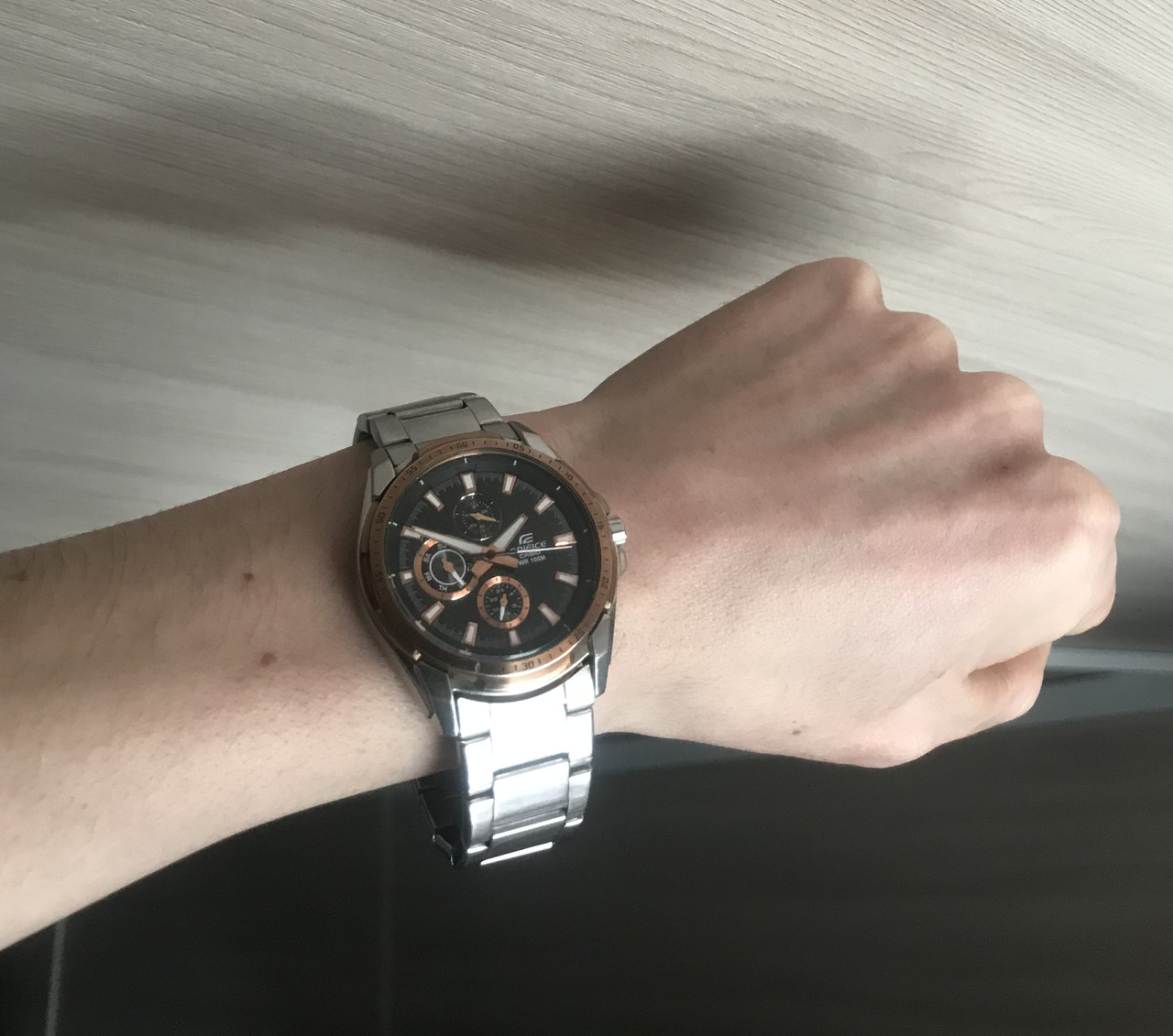 Был длительный опыт ношения Casio Edifice (хочется сменить марку), моделей ECW M300 (пару лет) (размер был великоват для моей худой ручонки; неудачное падение разбило стекло, заменённое стекло тоже разбилось, как ни странно, оба раза падение с 30 см плашмя стеклом вниз; для себя решил - перегруженные функционалом часы, плюс маркий чёрный глянцевый цвет и не понравился резиновый браслет).
