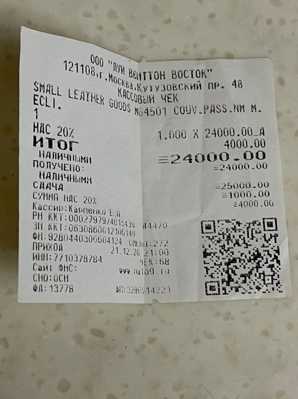 В комплекте чек о покупке. Куплена в бутике LV - Времена года