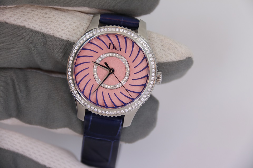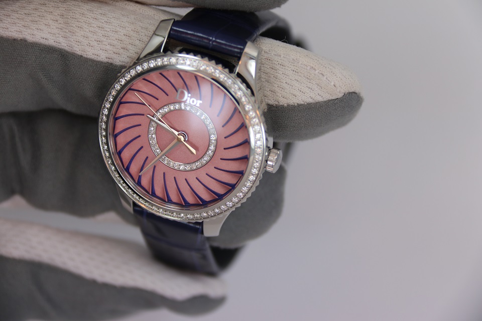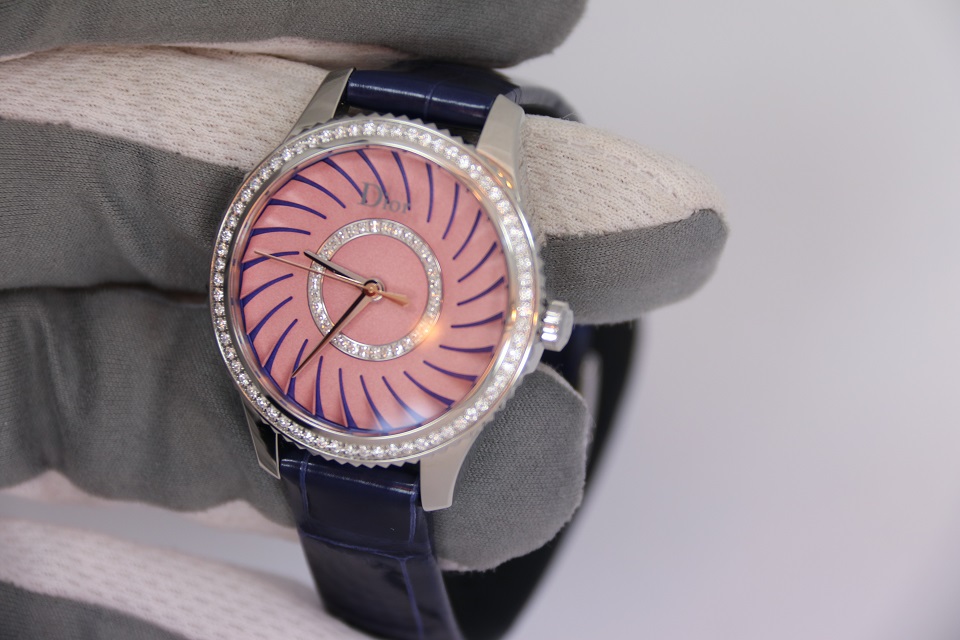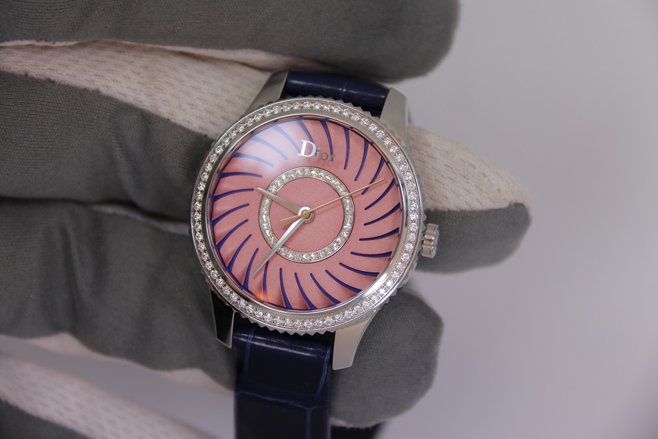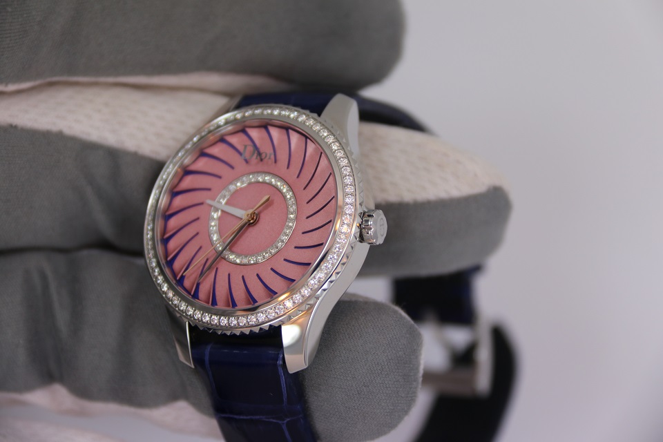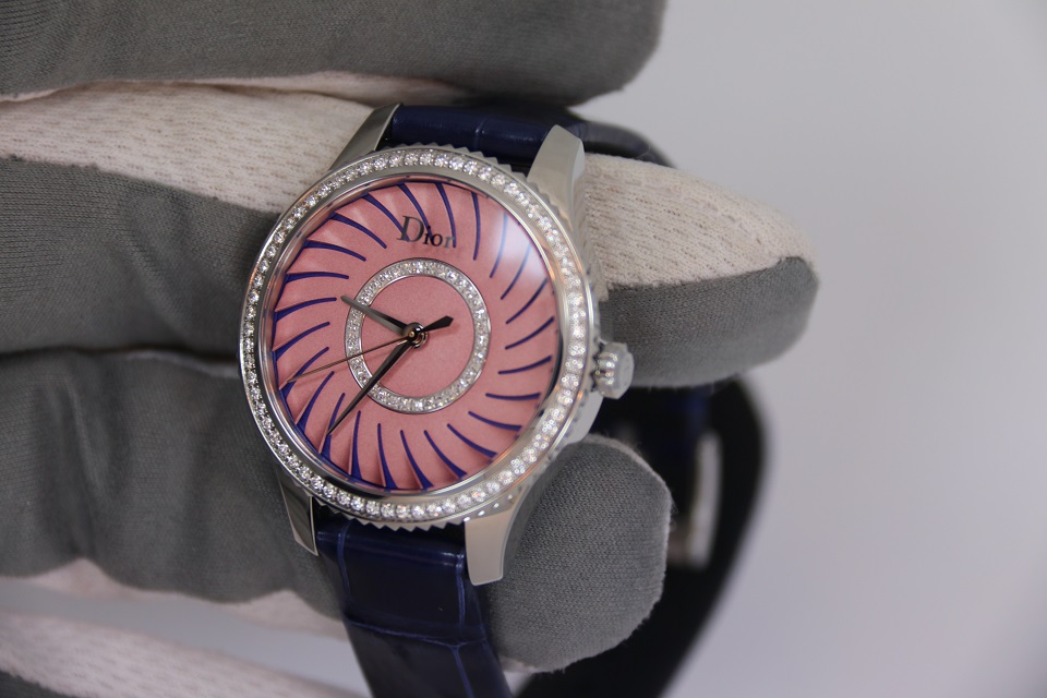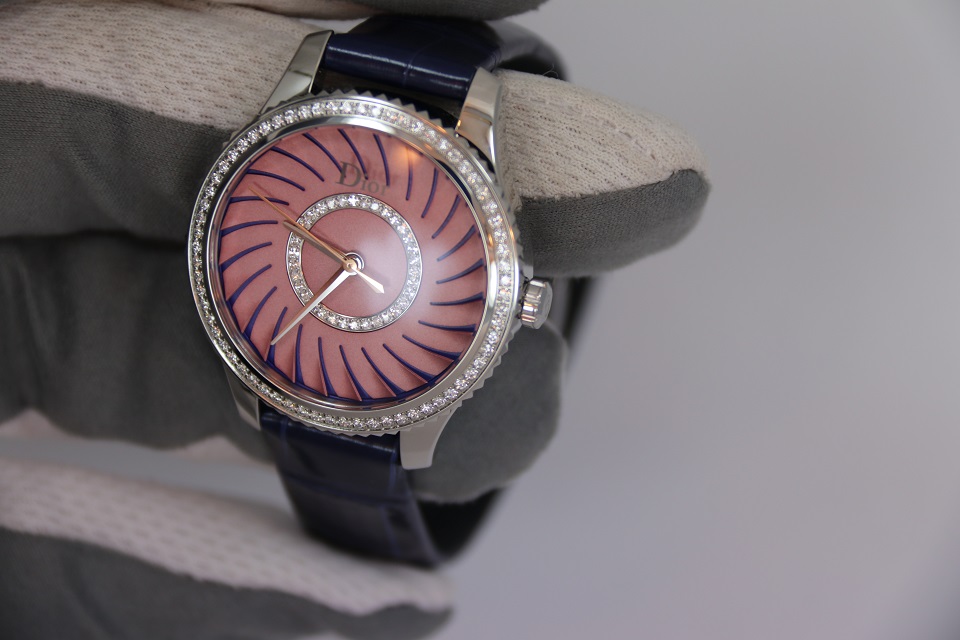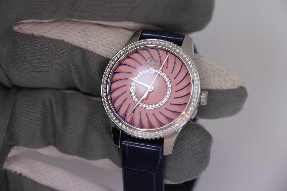 3-D пластина на циферблате символически представляет вид сверху на плиссированную юбку из первой коллекции высокой моды Диор.