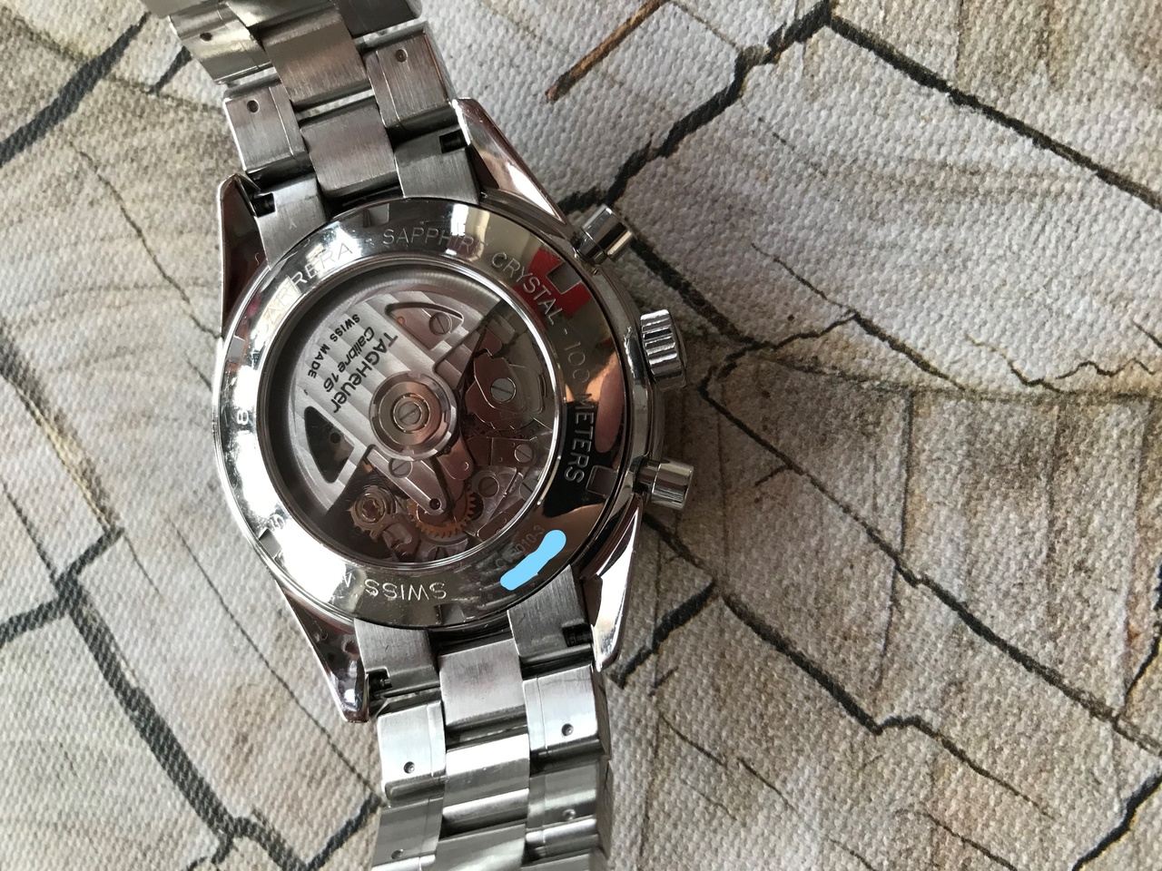 Механизм: калибр Tag Heuer Calibre 16 (на базе ETA Valjoux 7750), механический с системой автоматического подзавода, 28800 полуколебаний в час, 25 камней, запас хода 42 часа, быстрая корректировка даты.