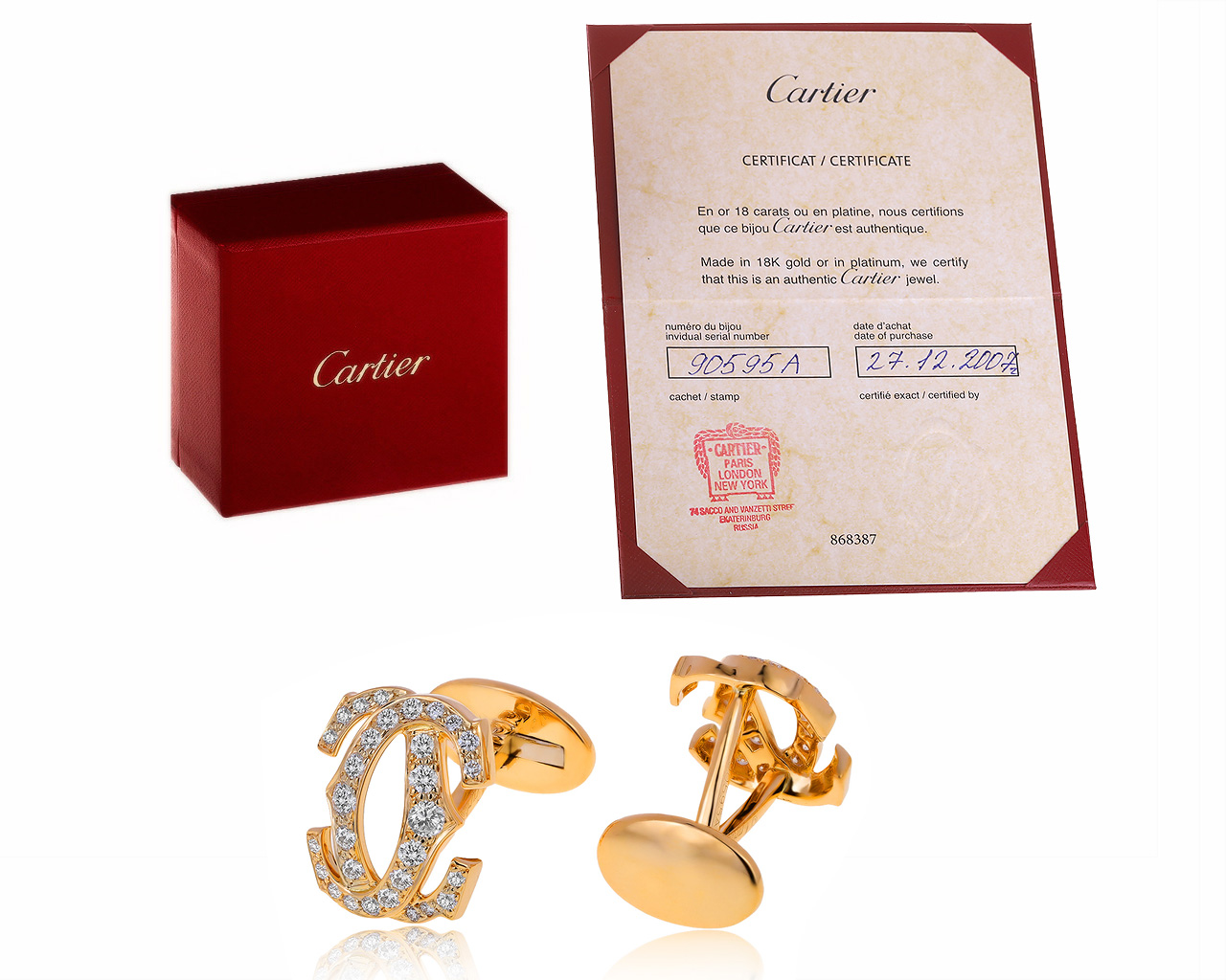 Представляем вашему вниманию оригинальные золотые запонки с бриллиантами 2.25ct от всемирно известного бренда Cartier из коллекции Double C Logo Penelop.