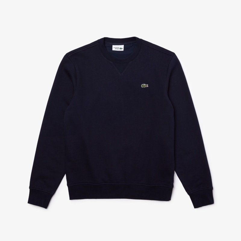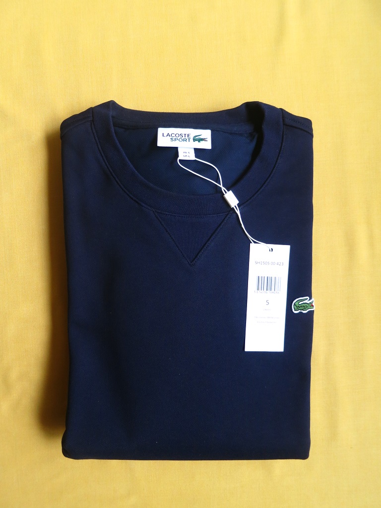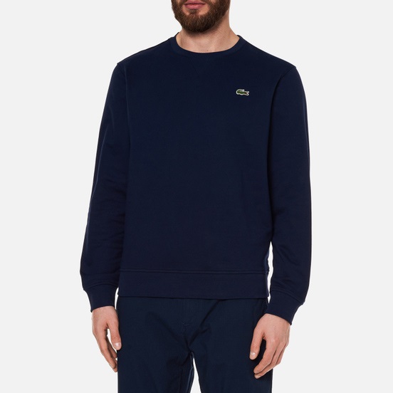 Материал - Cotton Blend Fleece (хлопок 83%, полиэстер 17%) с мягкой махровой текстурой внутри. Цвет - морская синь (темно синий). Ребристая отделка подола и рукавов. На груди вышит фирменный логотип в форме небольшого крокодила.