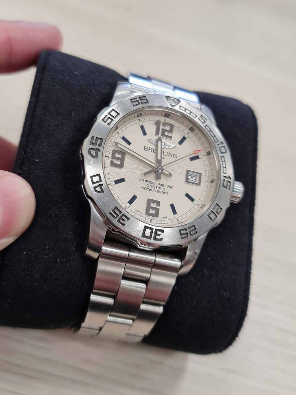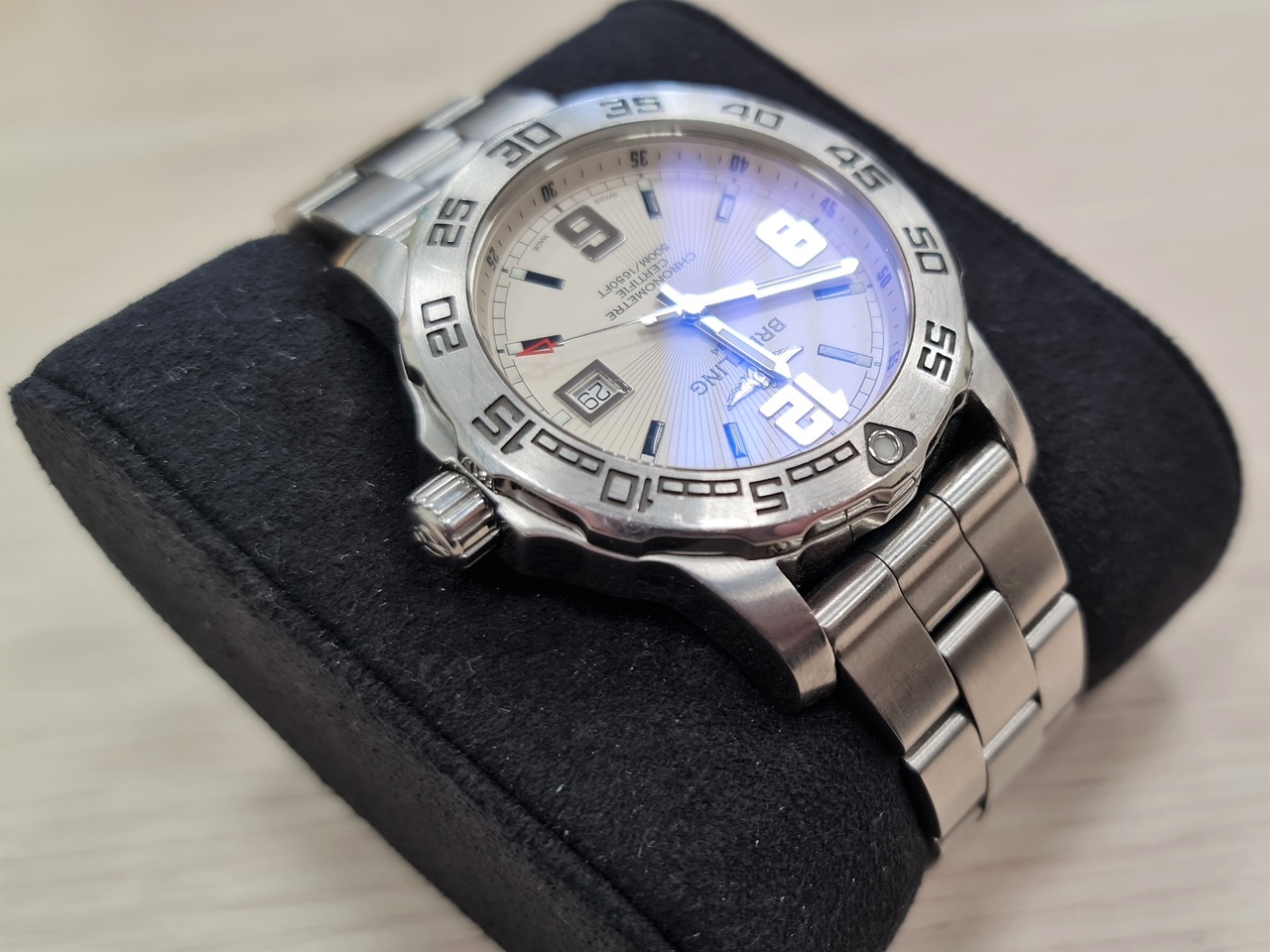 Продам Breitling Colt Chronometer 44 SuperQuartz A74387 на родном металлическом браслете. Покупал на форуме пару лет назад, носились не каждый день, не полировались, не вскрывались. Антиблик без дефектов, по корпусу и браслету есть следы эксплуатации - всё на фото. Комплект - всё, что на фото.
