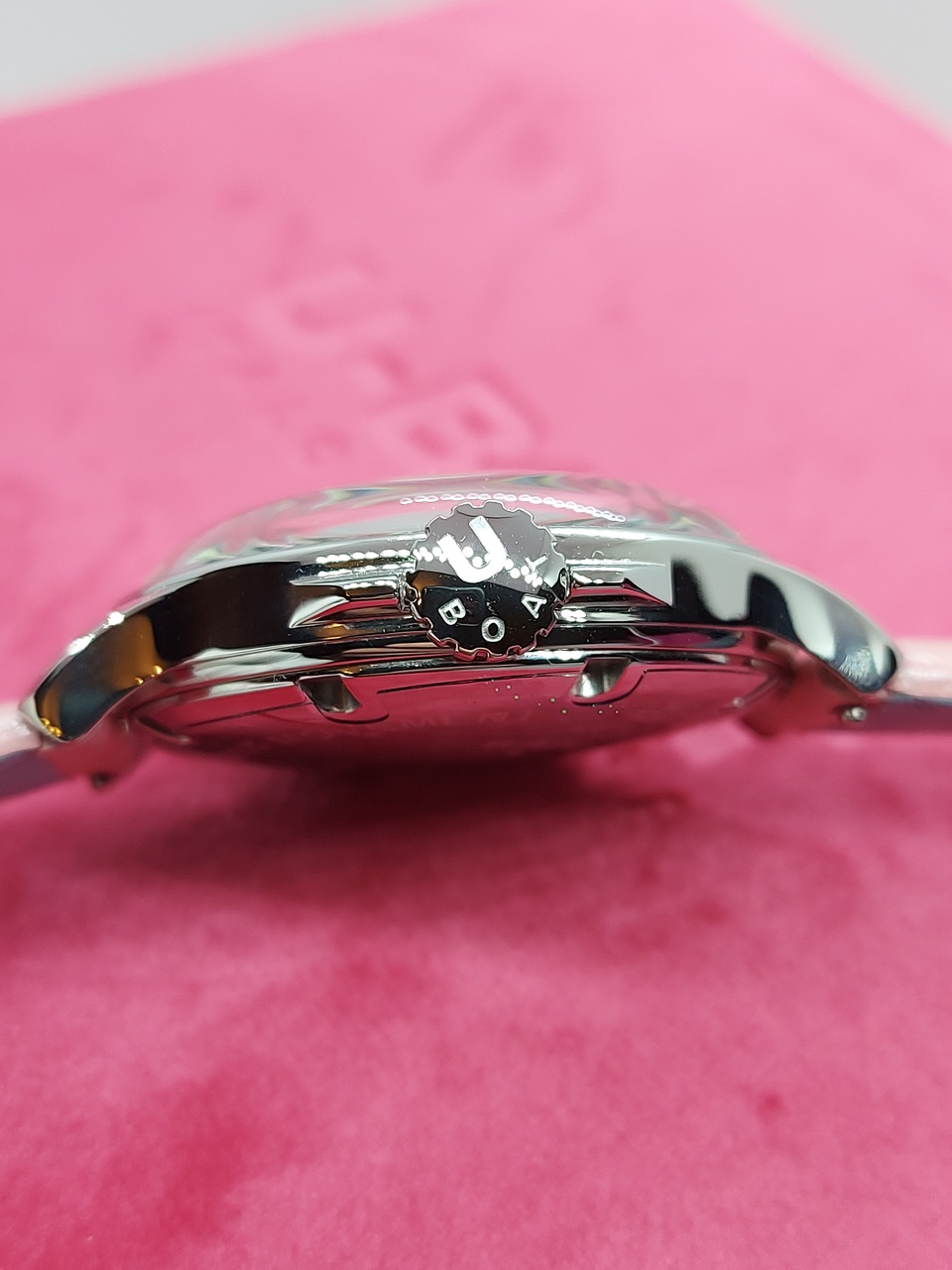 За изменение оттенков в зависимости от угла зрения отвечает розовый перламутр, из которого выполнены циферблаты, а также сверкающие кристаллы Swarovski на "12", "4" и "8 часах".