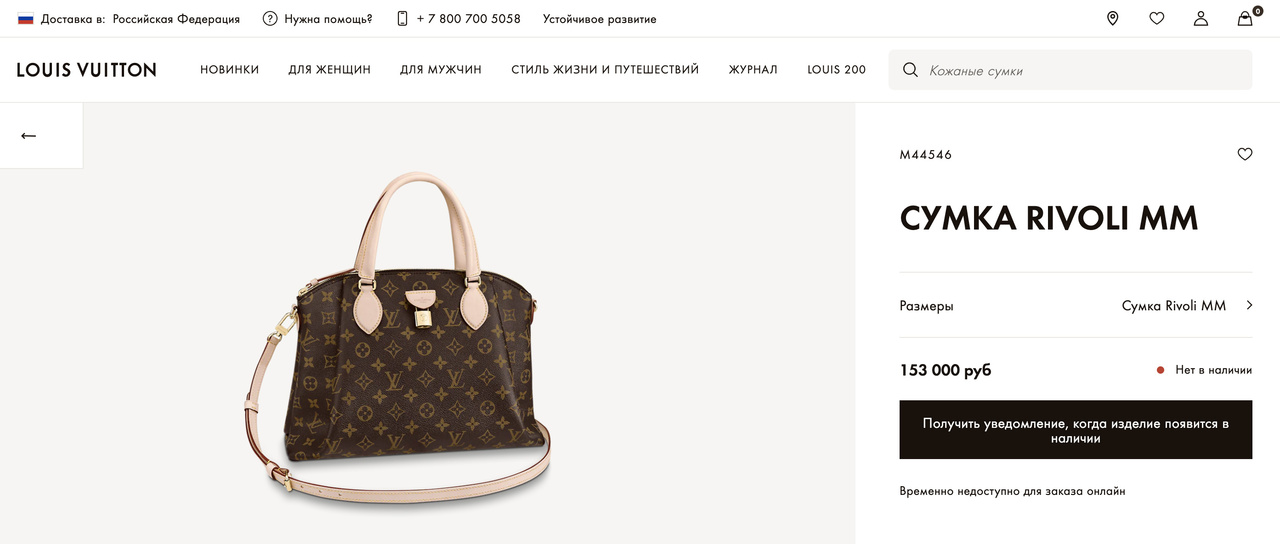 Стоимость в Louis Vuitton: 153.000 руб.