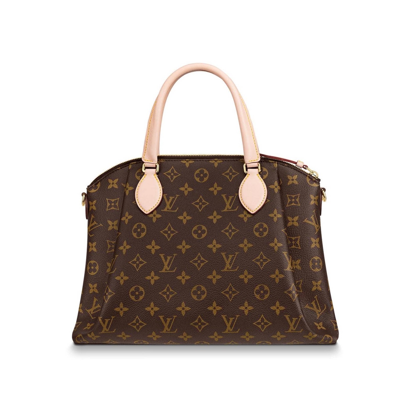 Материал - канва Monogram, отделка из натуральной кожи. Удобные ручки особой плотной двухслойной конструкции - как будто поверх обычных плоских ручек нашит дополнительный более толстый слой кожи - для повышения комфорта ношения в руках. Регулируемый по длине, а по желанию полностью съемный, кожаный плечевой ремень.