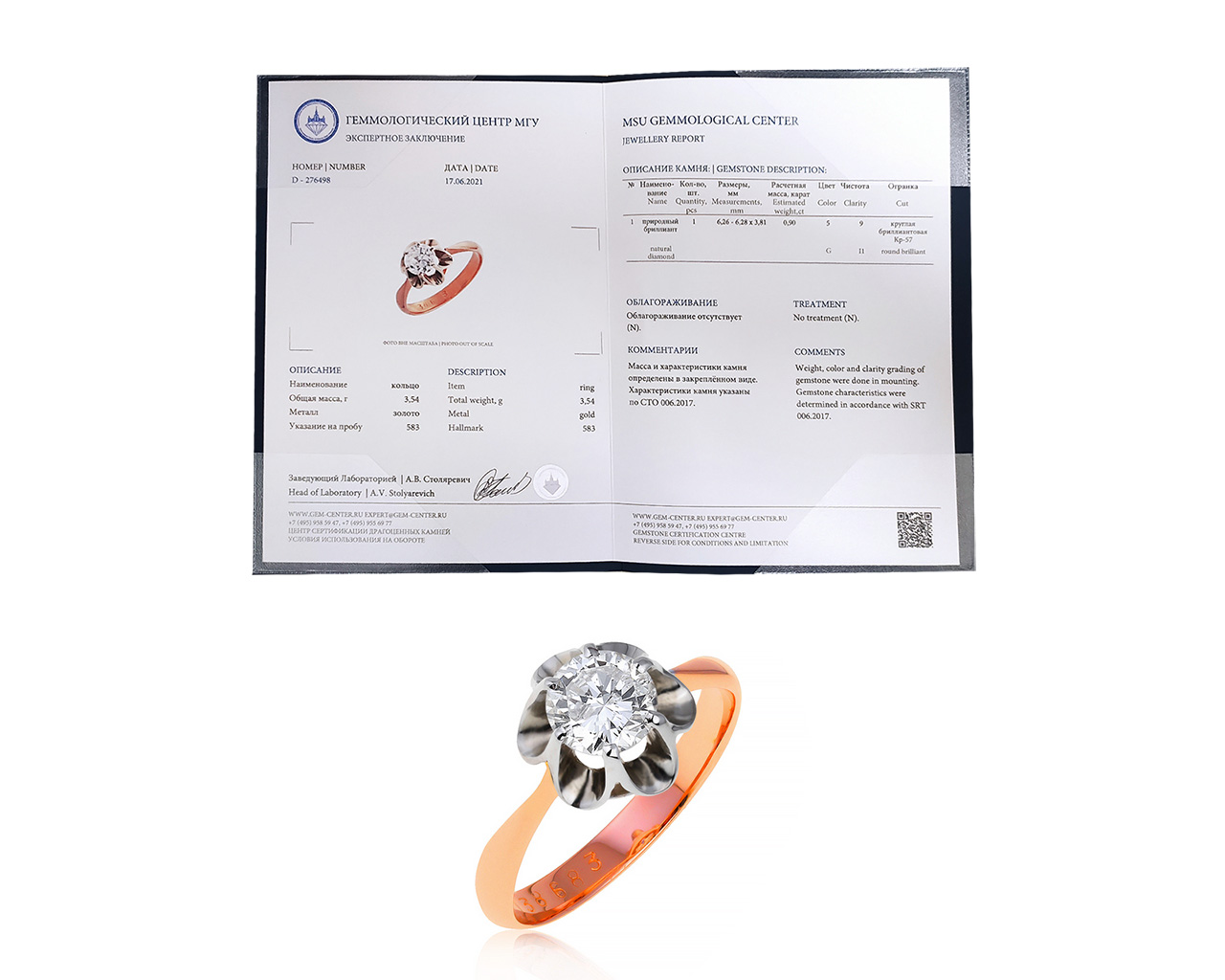 Винтажное золотое кольцо с бриллиантом 0.90ct СССР
