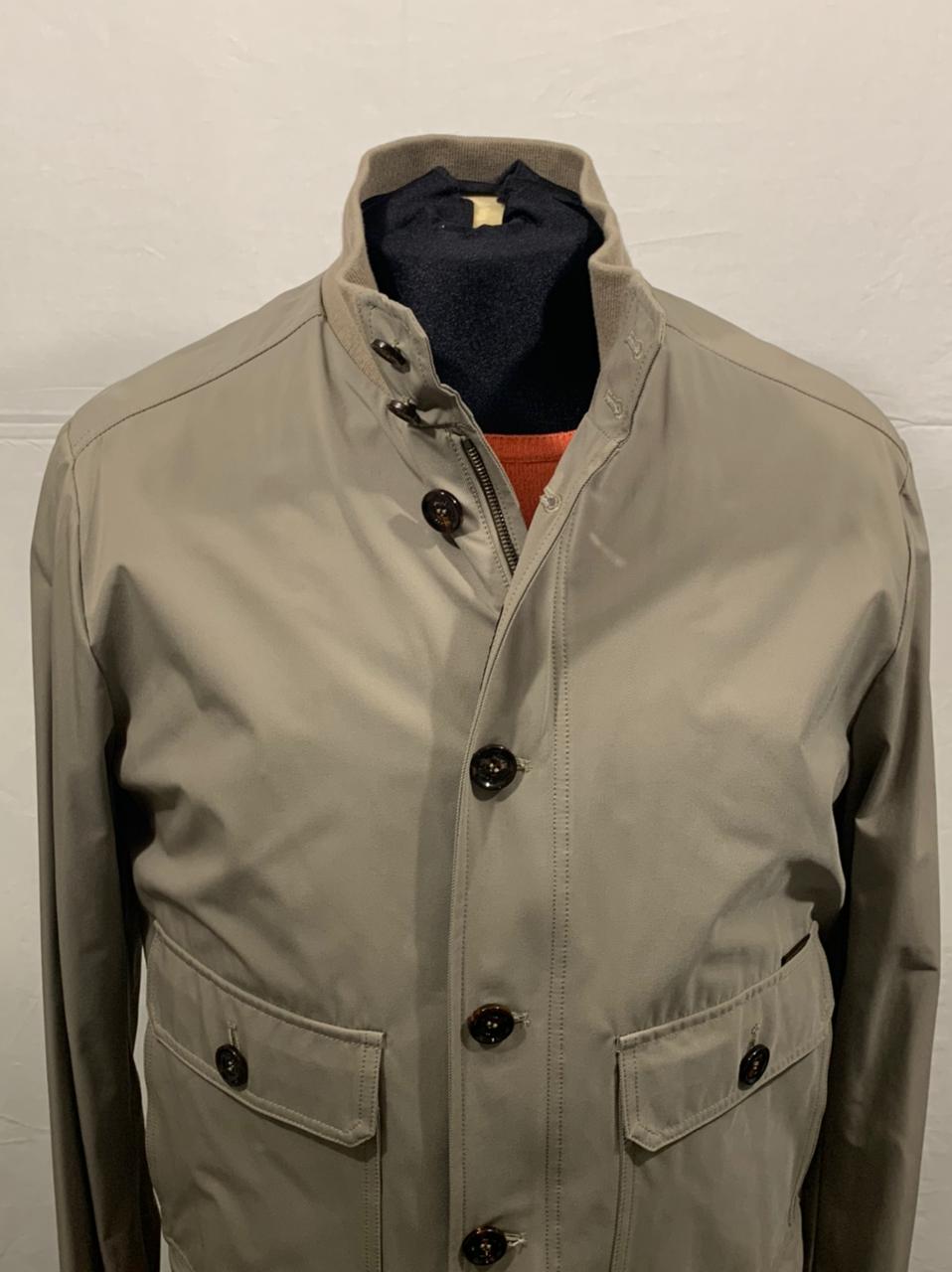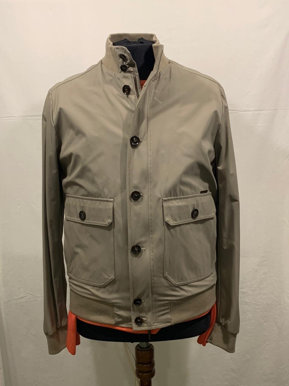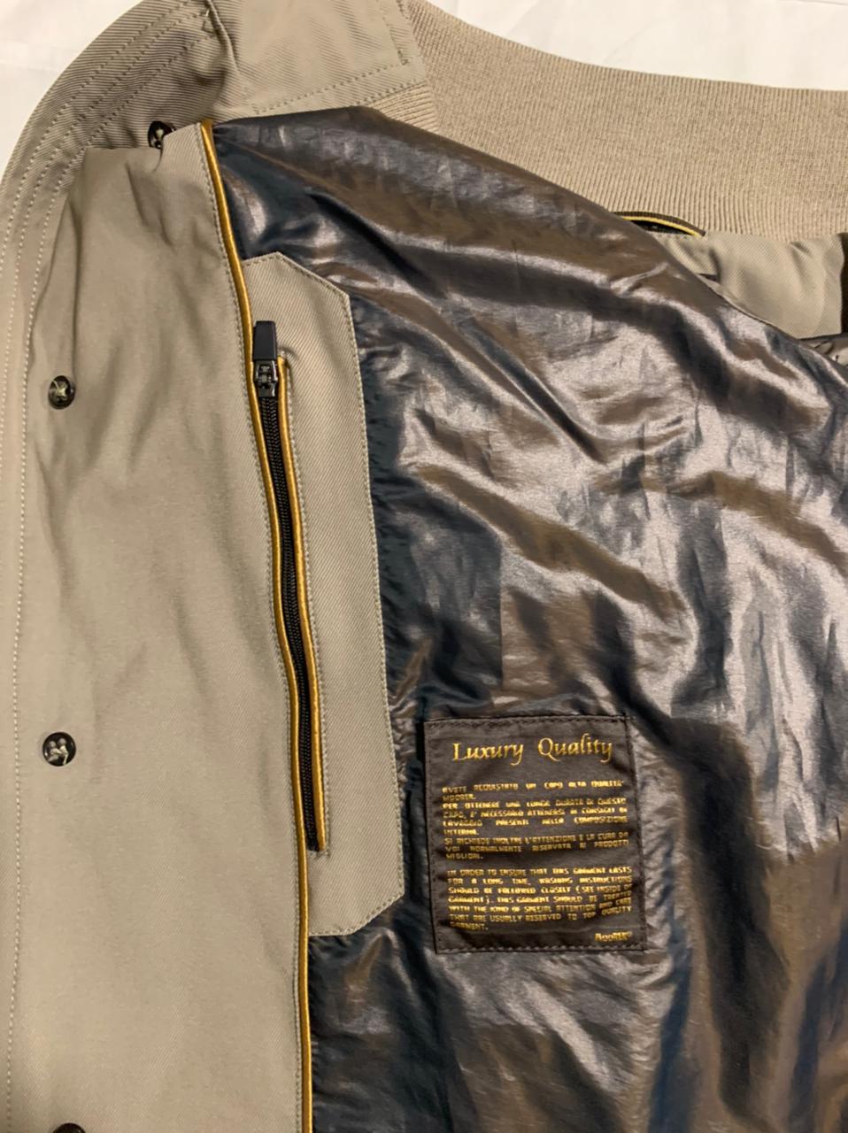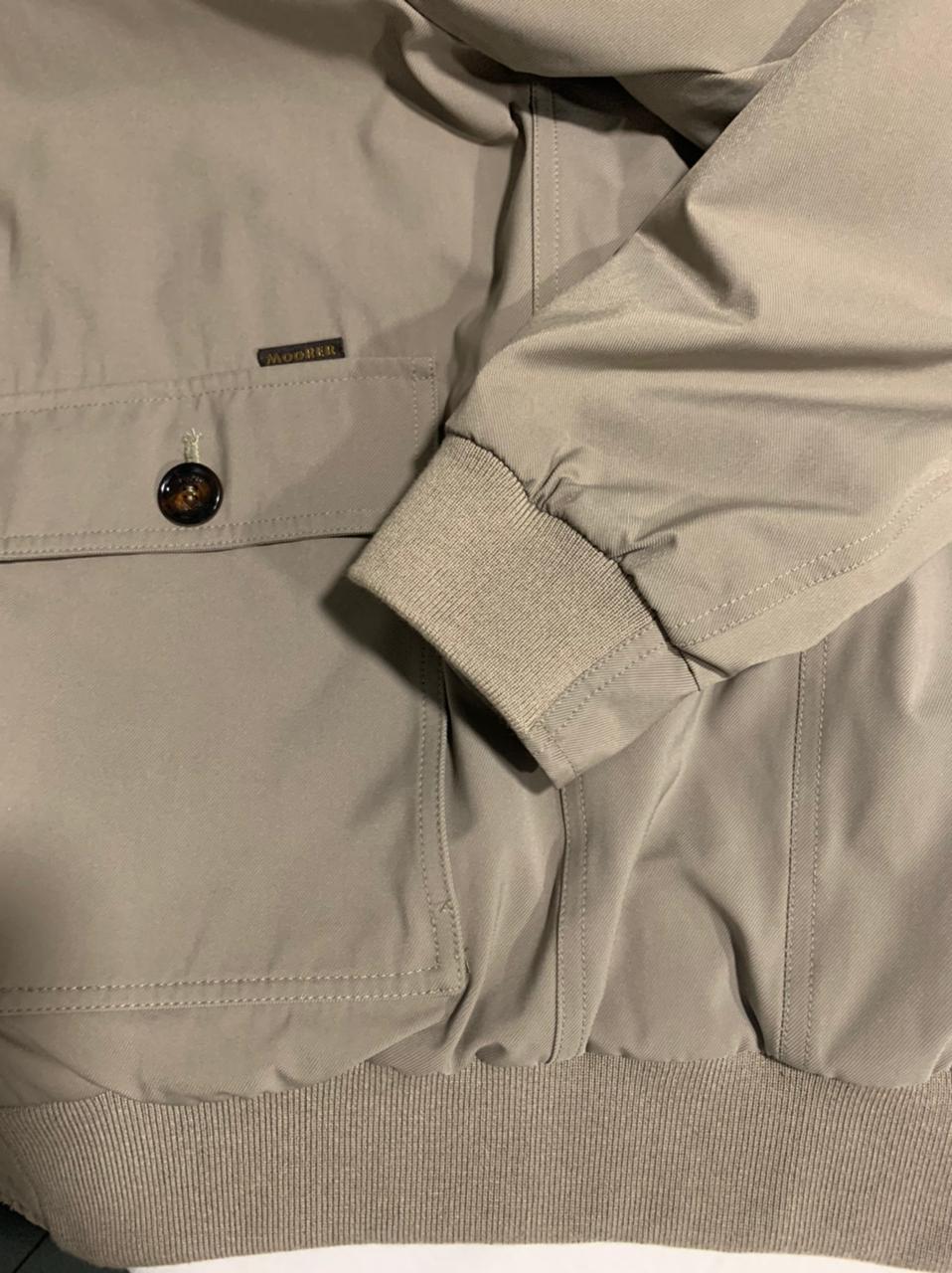 Продается новая мужская куртка-бомбер итальянского премиум бренда MOORER превосходного исполнения , бежевого цвета, высокий воротник , застегивается на пуговицы с логотипом бренда, наружные накладные карманы на пуговицах, в карманах сбоку прорезные карманы для удобства расположения рук, внутренние карманы на молнии, трикотажные: воротник, манжеты рукавов, низ куртки ( шерсть+акрил), внутри на подкладке, состав ткани: 90% полиамид , 10% полиэстер, все бирки прилагаются , гарантированный 100 % оригинал, размер 54(IT), производство Италия