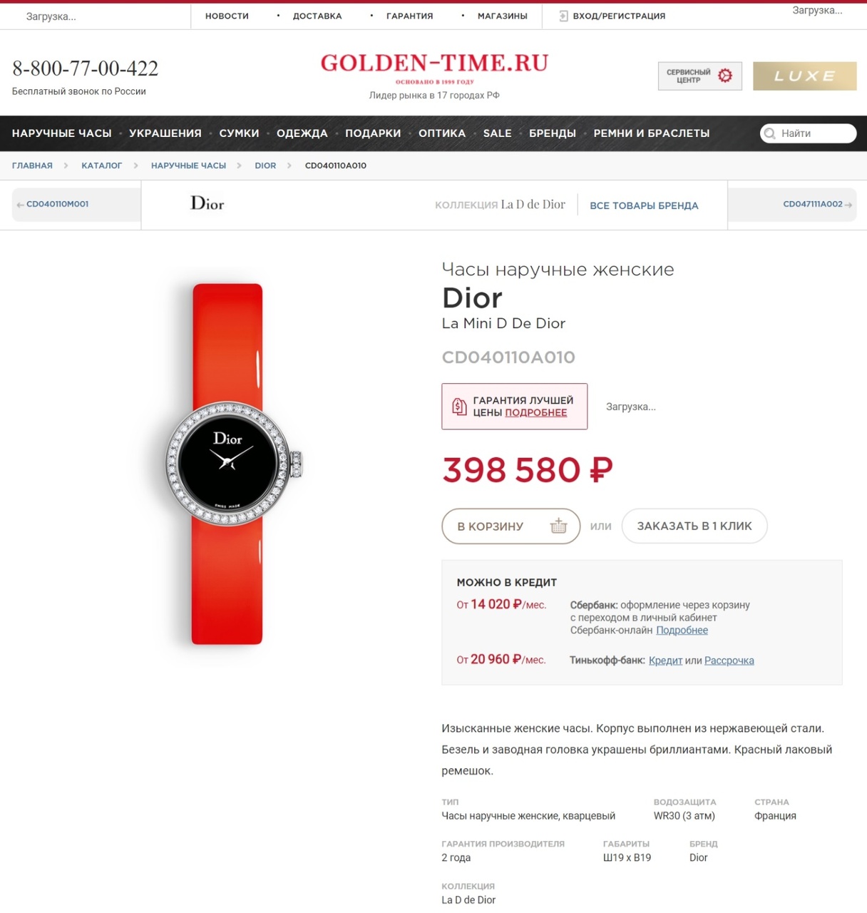 Ссылка на аналогичные часы с черным циферблатом - https://golden-time.ru/catalog/dior_...10a010_fp9346/