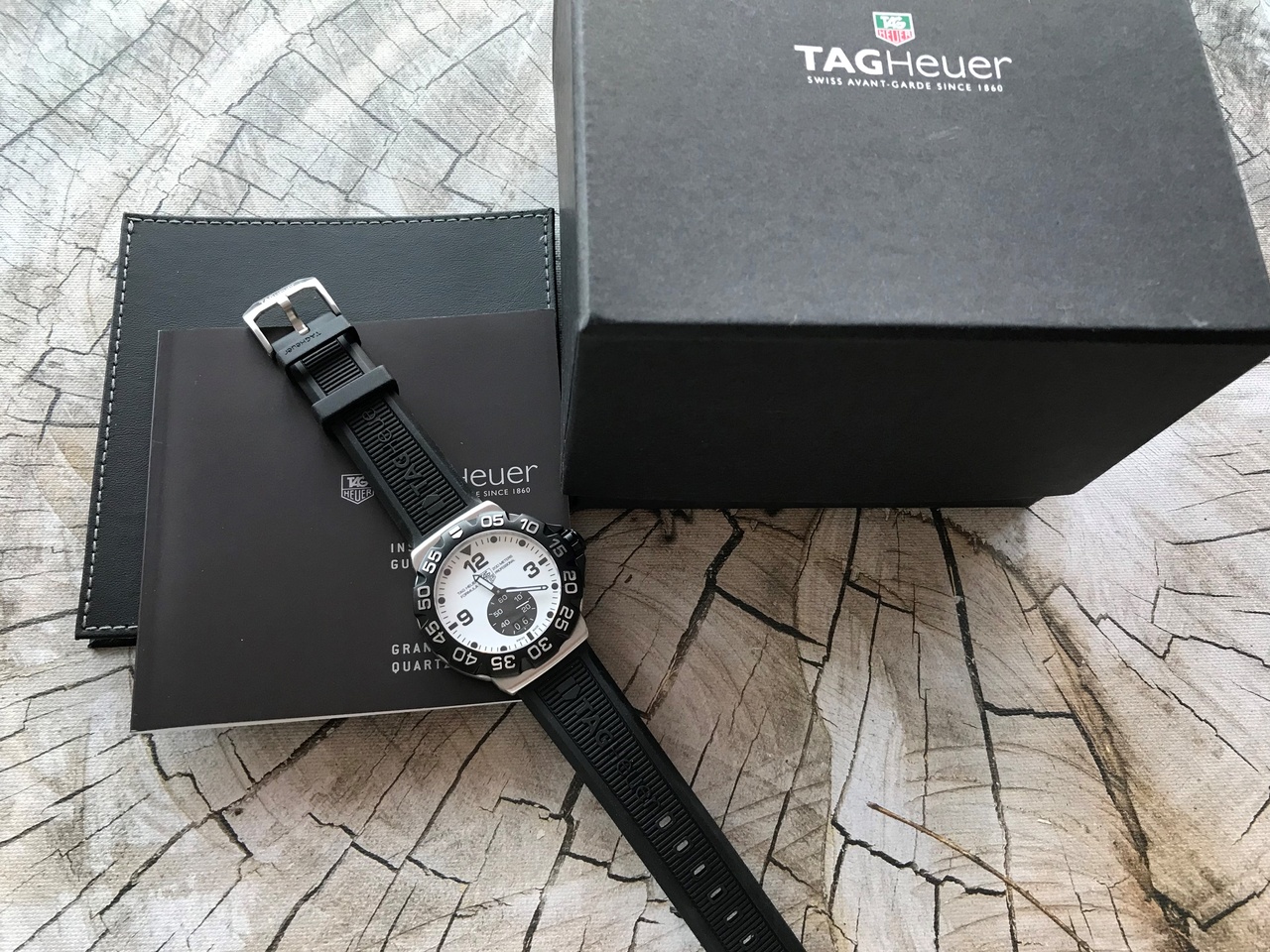 В наличии мужские часы TAG HEUER FORMULA 1 GRANDE DATE WAH1011.BT0717 в состоянии близком к идеальному. В комплекте: часы, внешняя коробка, шкатулка, чехол, инструкция. Установлен новый каучуковый ремешок в официальном сервисном центре LPI watch клуб. Легко подойдут на подарок!