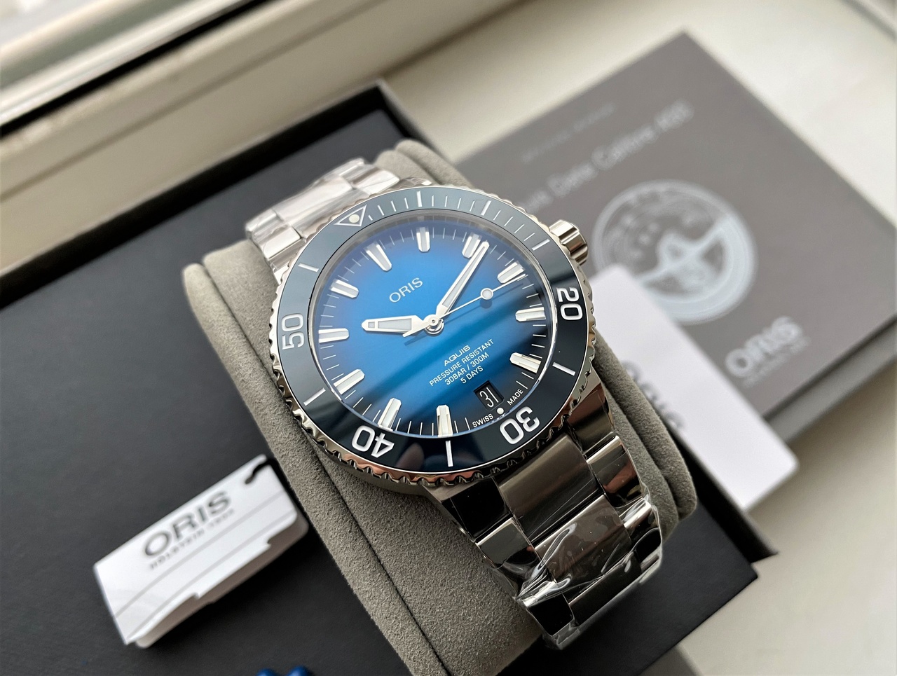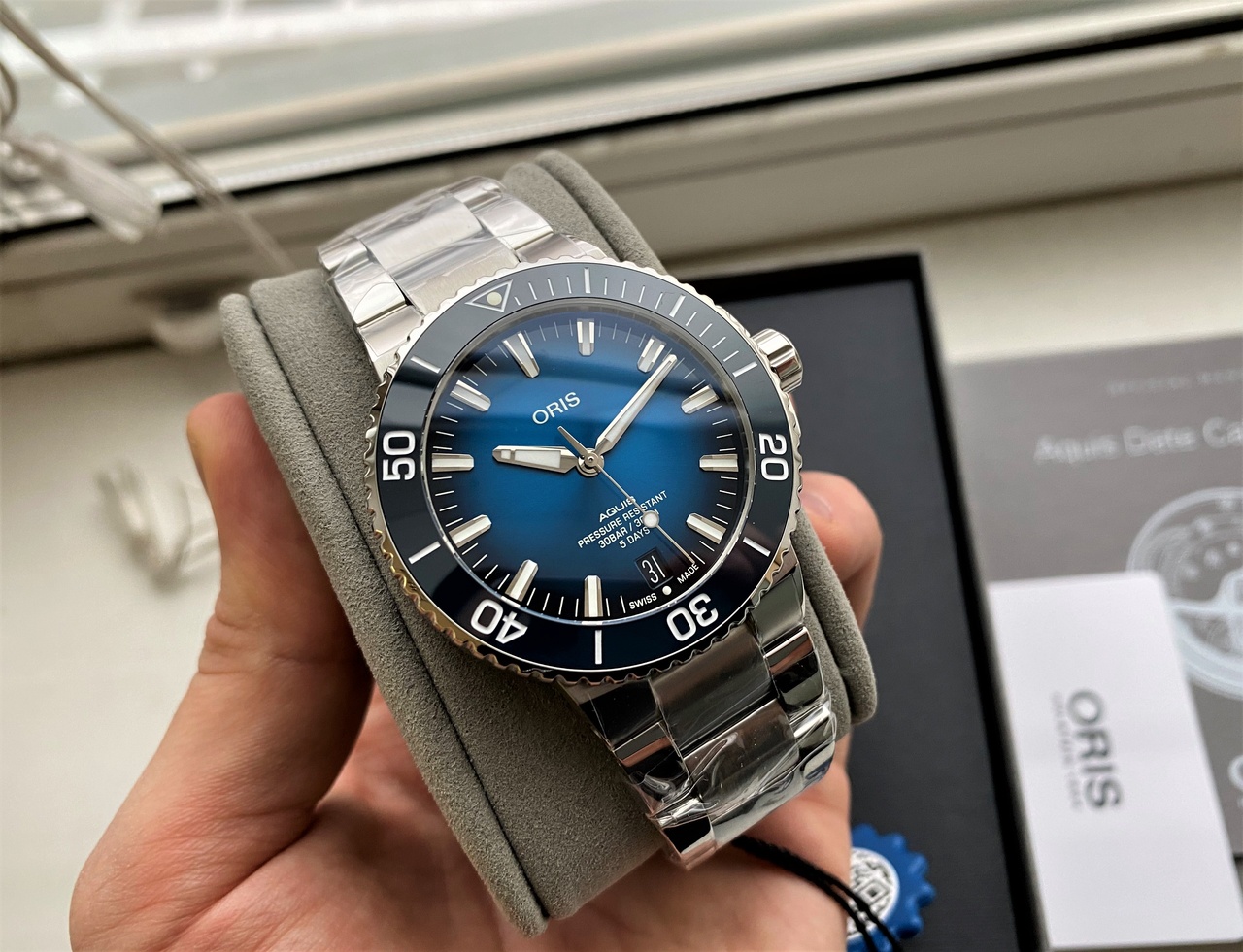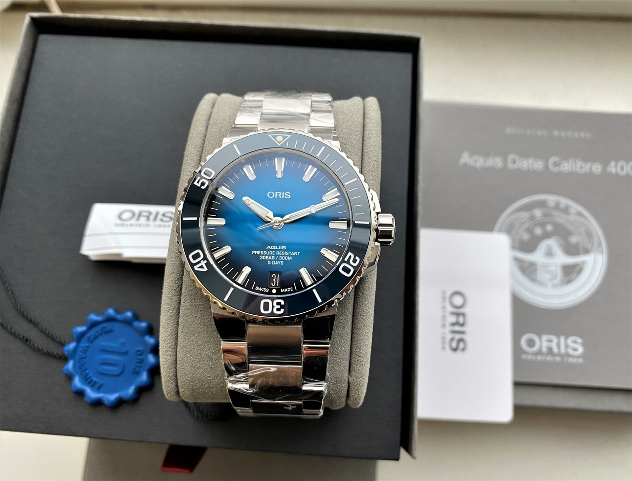 Традиционное качество и внимание к деталям Oris, безумно красивый, синий оттенок циферблата, браслет, универсальный диаметр 43.5мм.